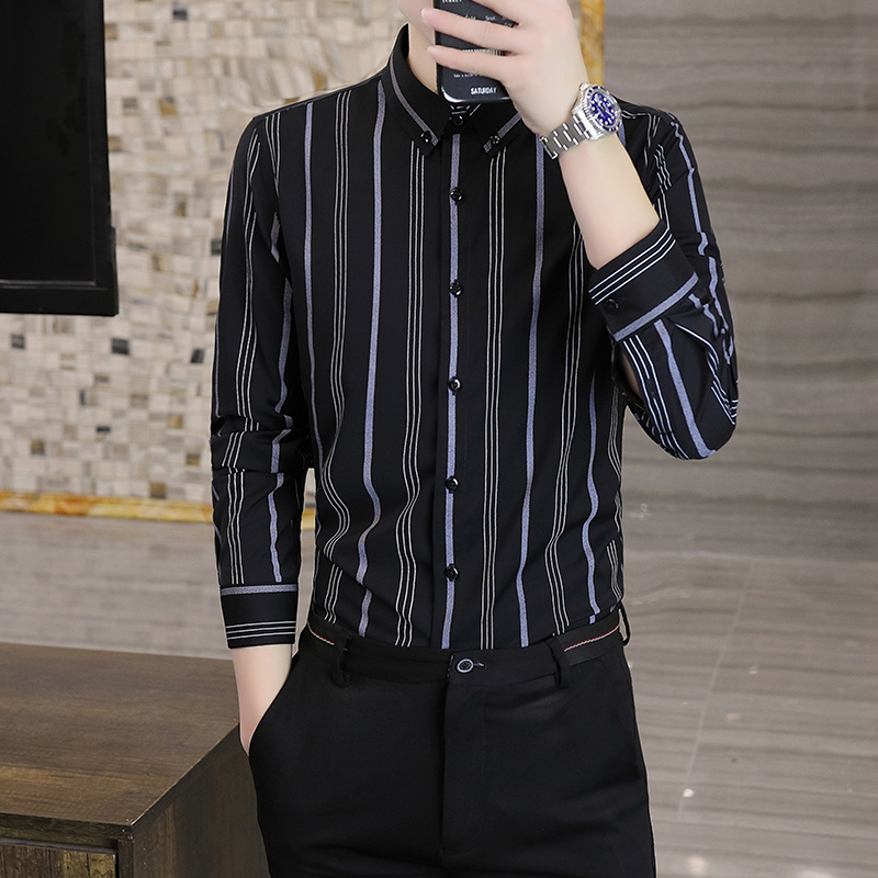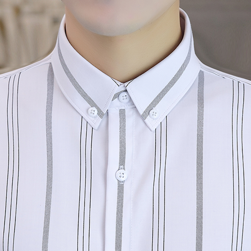 修身 白衬衫 免烫韩版 春秋内搭商务职业正装 纯棉抗皱纯色衬衣 男长袖