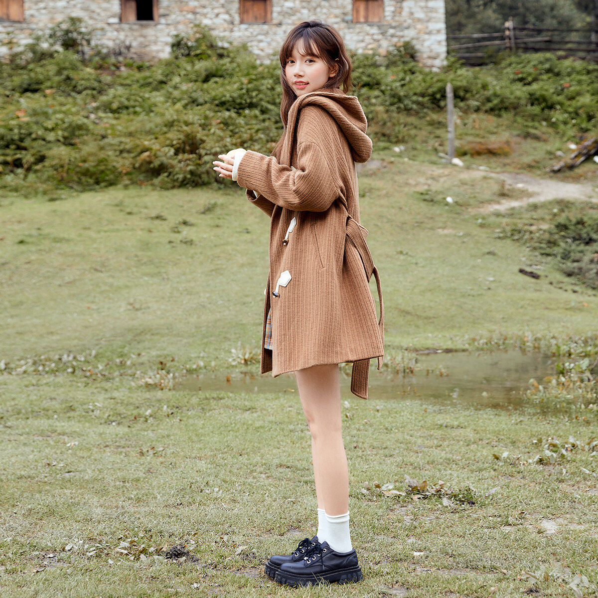 复古格子毛呢外套女2025秋冬新款 上衣 学院风宽松休闲连帽加厚衬衫