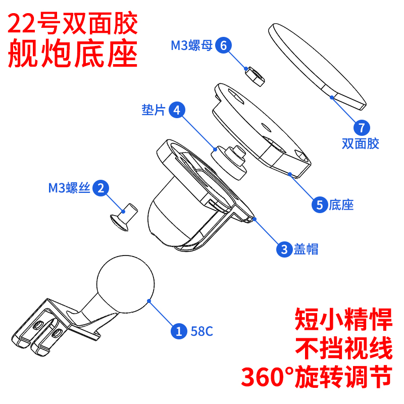 倒车摄像头方形机器专用支架粘贴底座可调固定汽车记录仪后摄像头