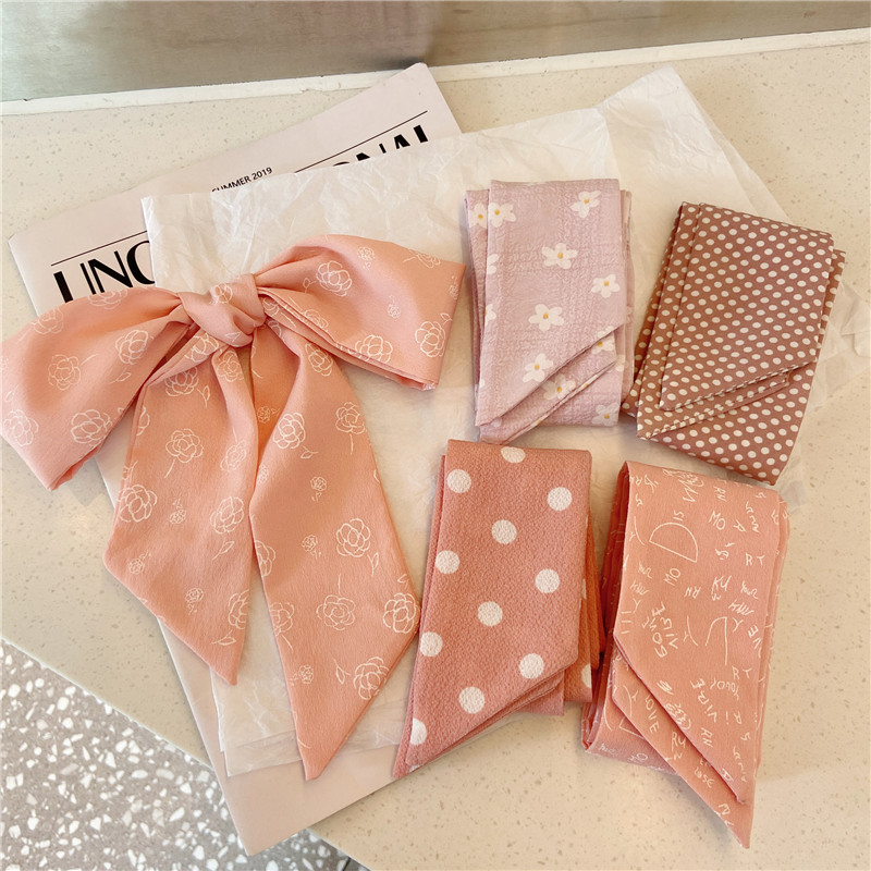 超仙头绳飘带头饰多功能丝带 法式 网红桃色丝巾发带女绑发夏季 薄款