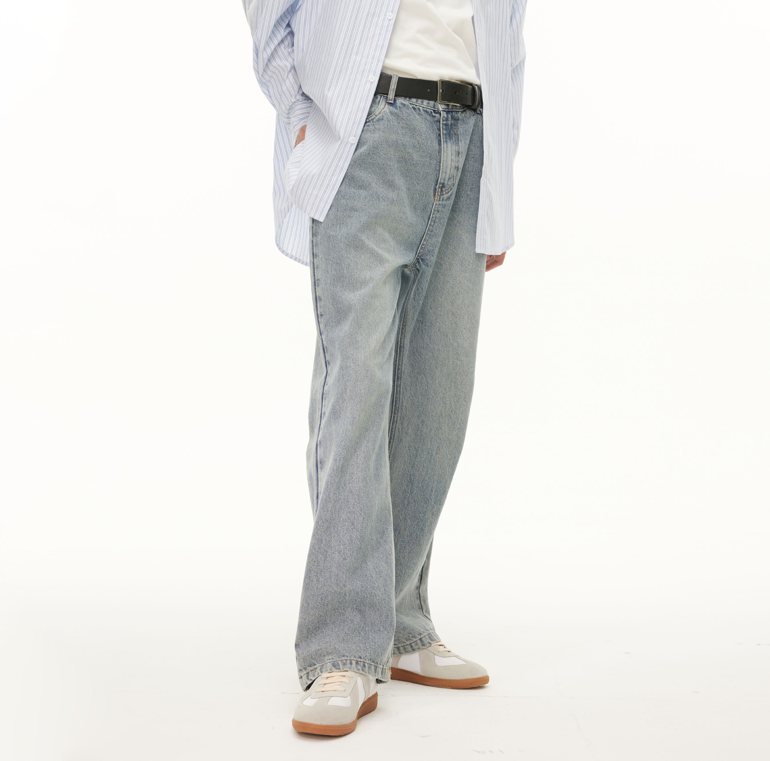 浅色香蕉裤 Lilbetter复古水洗做旧蓝绿色宽松牛仔长裤 男秋夏薄款