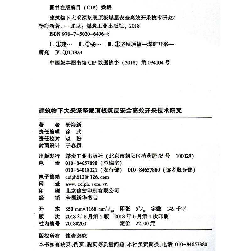 9787502064068 社 建筑物下大采深坚硬顶板煤层安全高效开采技术研究 煤炭工业出版