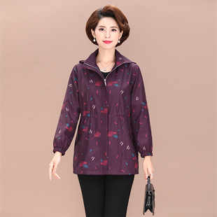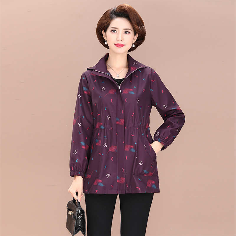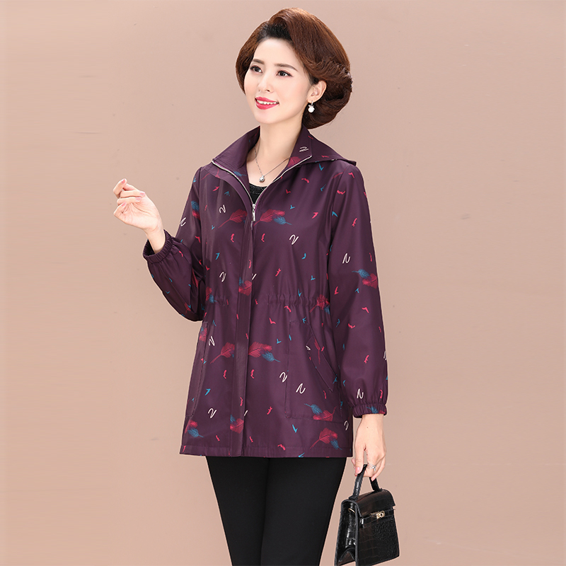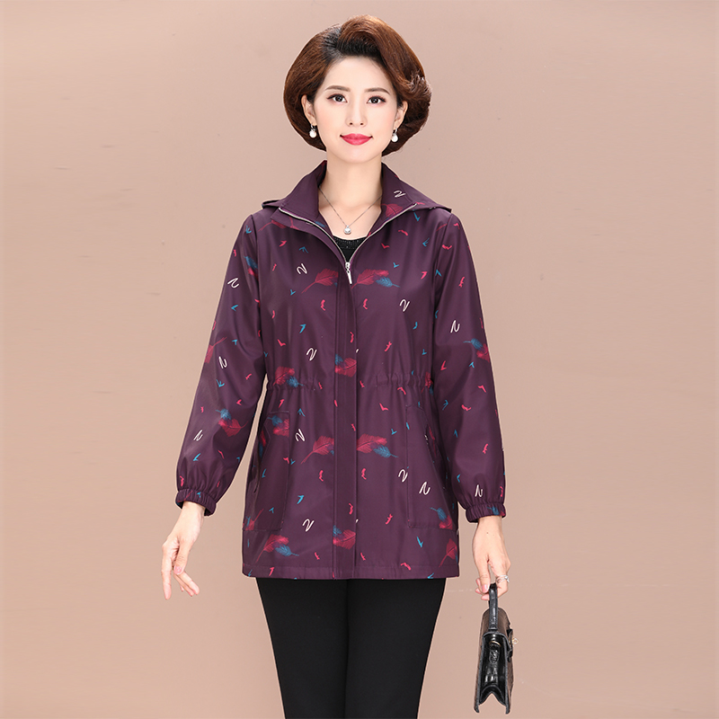 连帽春秋风衣女 中老年人衣服外套高贵短款 妈妈装 轻薄上衣洋气大码