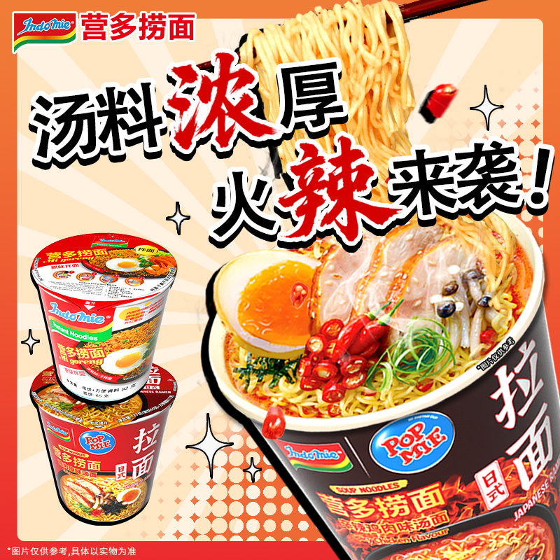 印尼进口indomie营多捞面杯面速食泡面干拌面盒桶装 方便面火鸡面