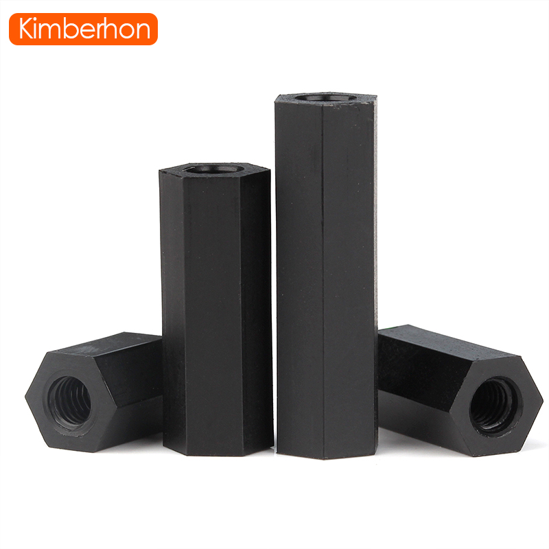 M2M2.5M3M4黑色双通尼龙柱六角塑料螺柱绝缘支撑柱隔离柱加长螺母
