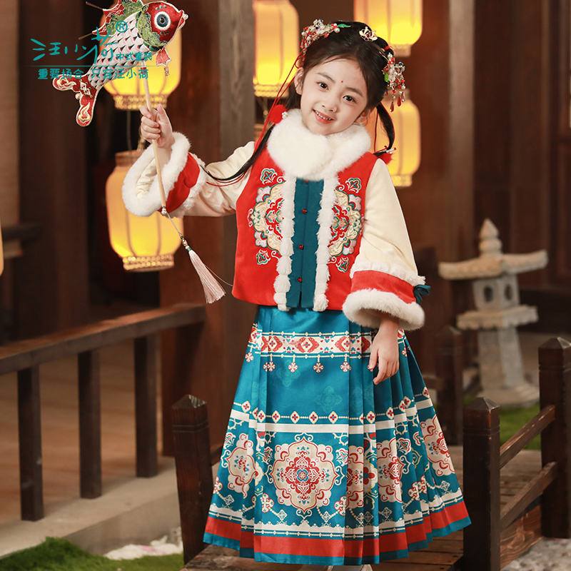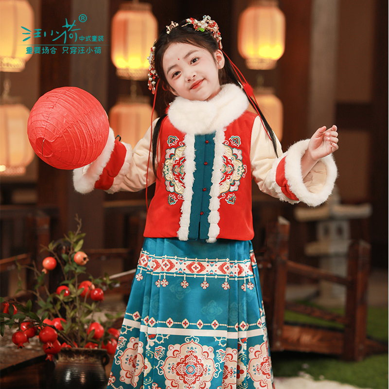 汉服拜年服 中国风古装 汪小荷儿童马面裙女童套装 秋冬新款