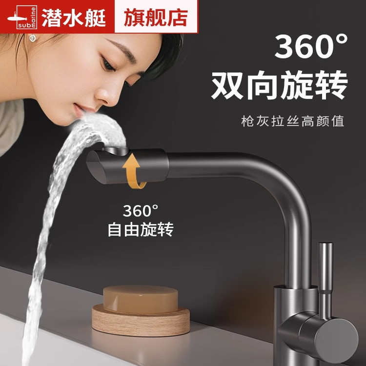 潜水艇洗面盆龙头冷热不锈钢卫生间洗脸盆台盆洗衣池浴室柜水龙头