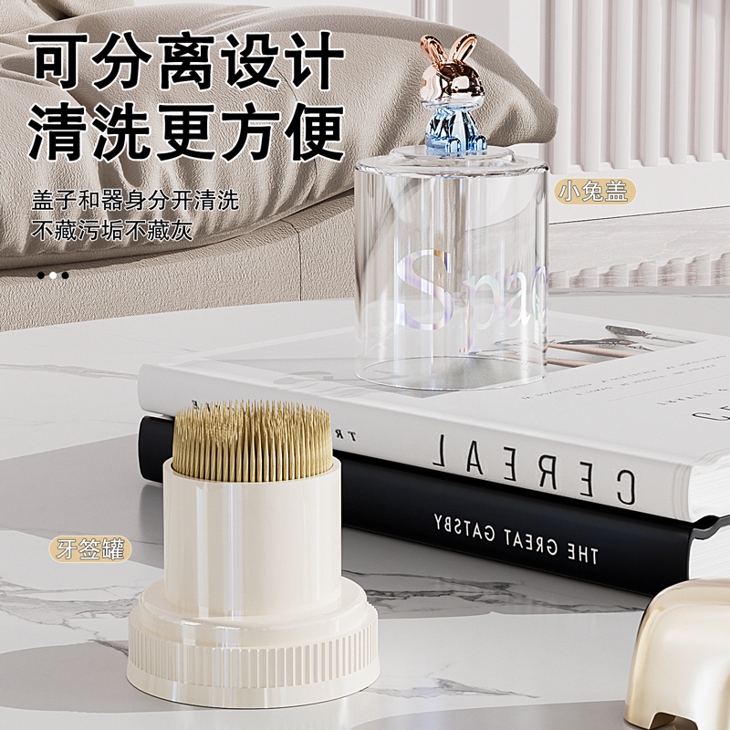 牙签盒家用高档2024新款 创意高颜值牙线棉签收纳盒 网红牙签筒个性