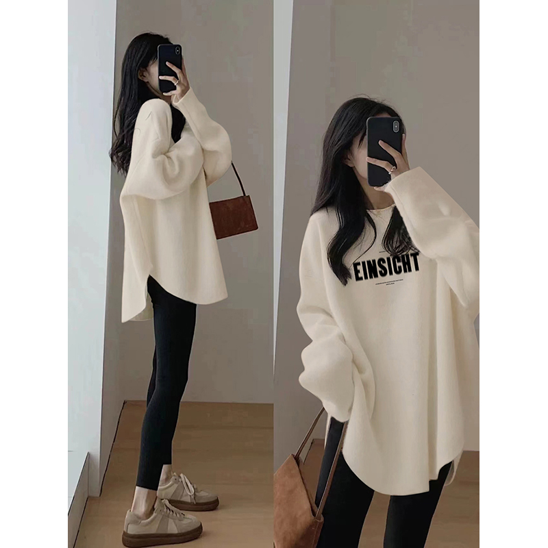 配鲨鱼裤 T恤女秋冬加绒欧货卫衣内搭遮屁股打底衫 上衣 长袖 中长款