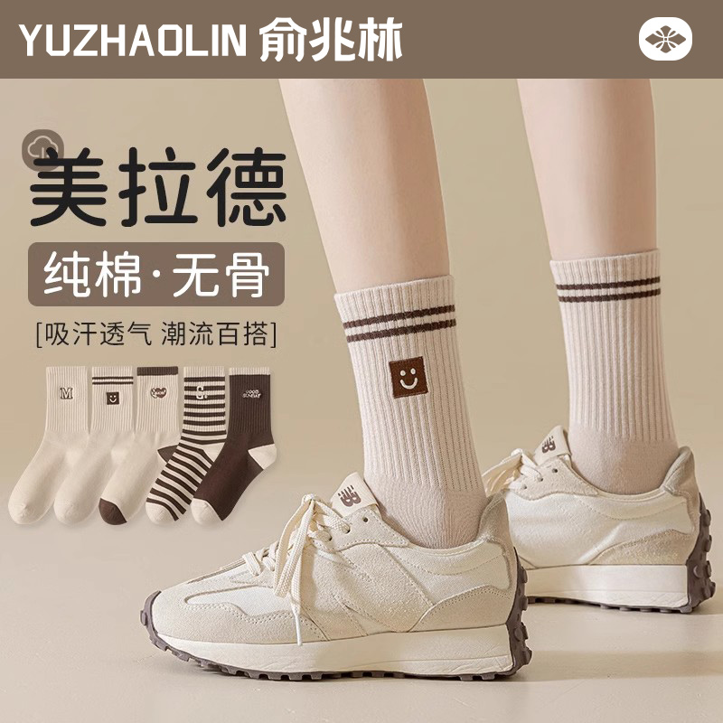 白色无骨秋冬堆堆袜 中筒袜纯棉月子袜2025新款 100%棉袜子女款 秋季