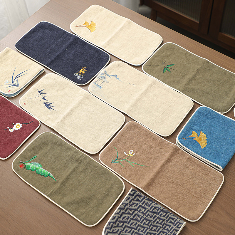 轻奢茶台茶桌茶巾刺绣加厚毛巾茶席吸水养壶抹布专用棉麻方形茶水