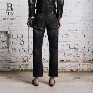 夏男女休闲宽松长裤 江南先生NewJNXS美式 复古水洗做旧弯刀牛仔裤