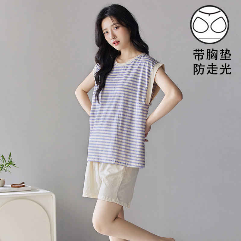 都市丽人孕妇睡衣女带胸垫纯棉月子服孕期产后哺乳新款 家居服套装