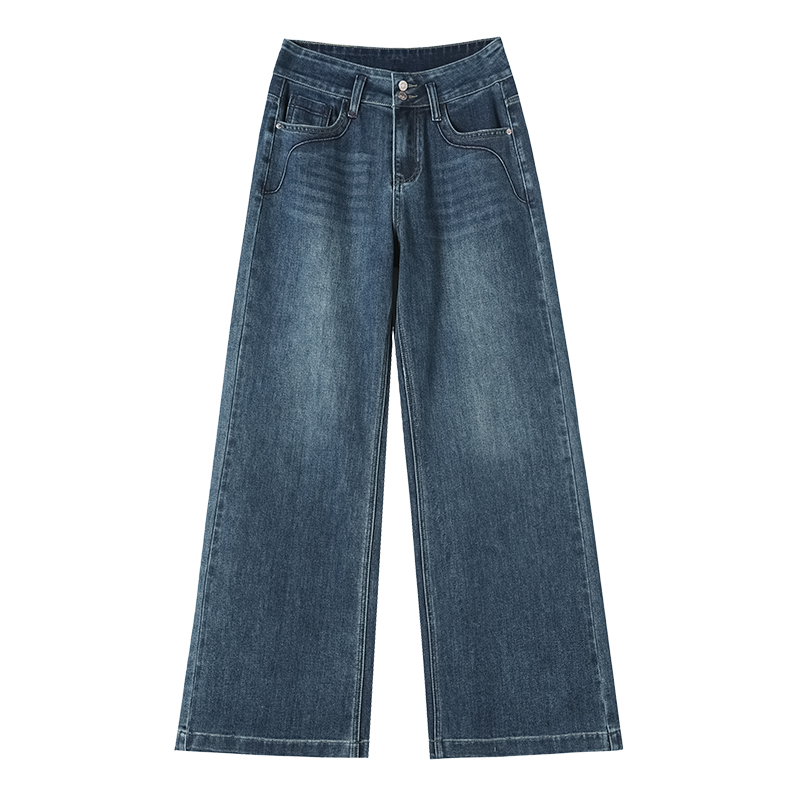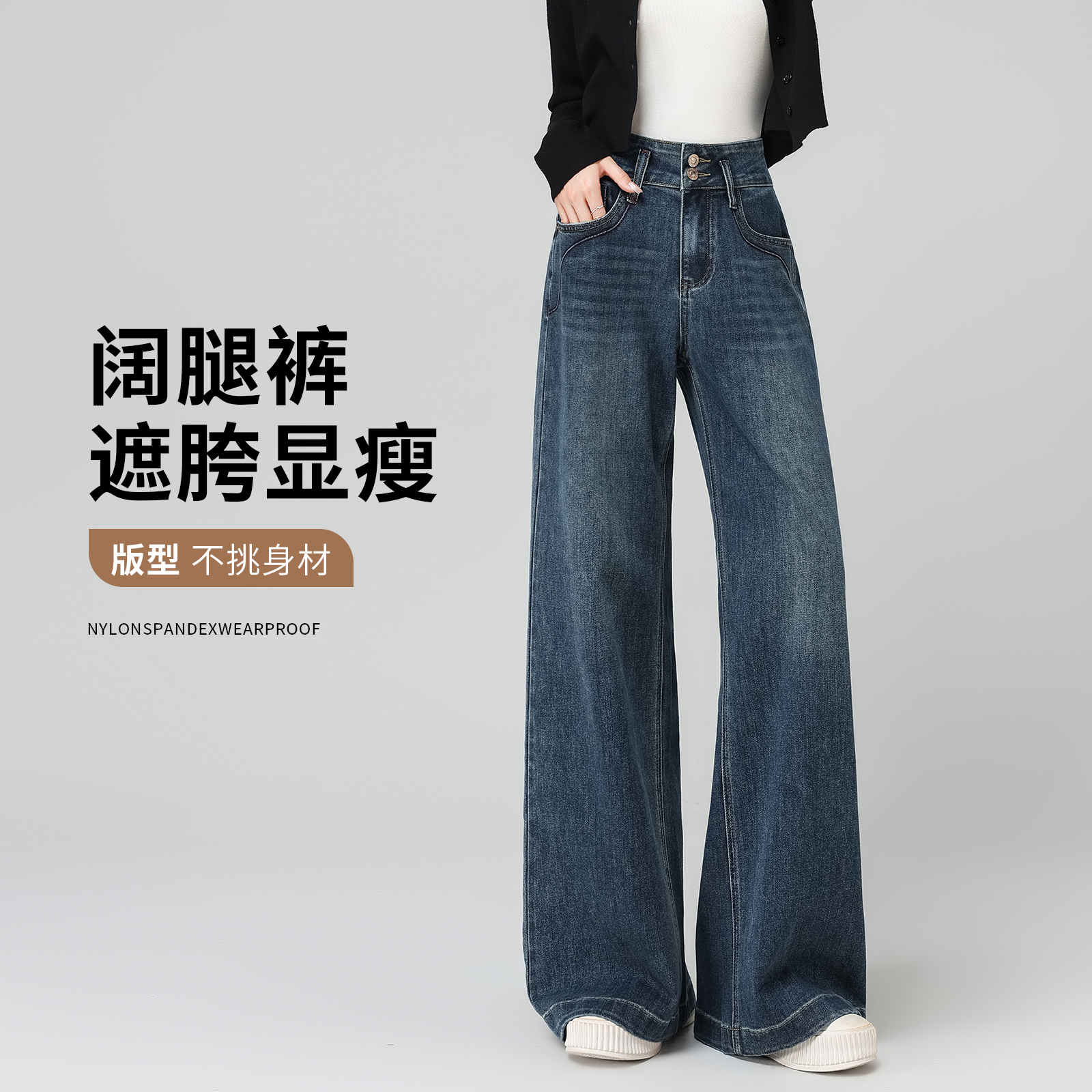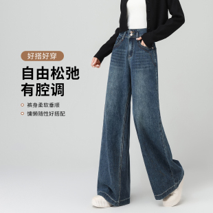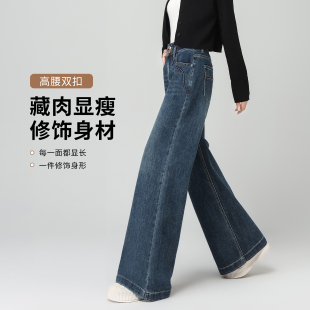 直筒裤 高腰宽松垂感显瘦复古小个子窄版 女春秋2025新款 阔腿牛仔裤
