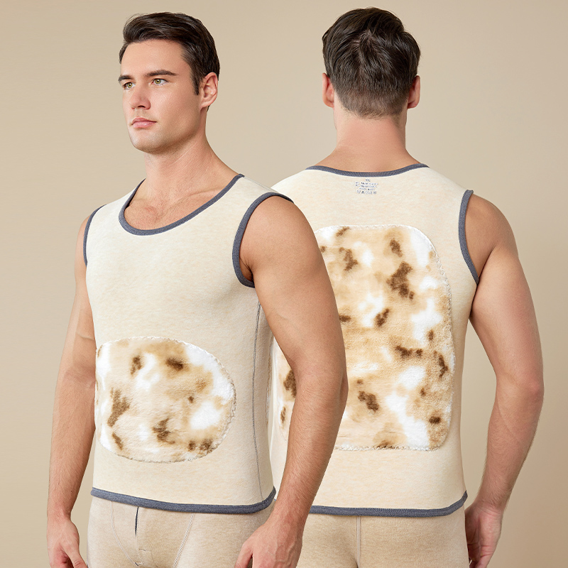 芬腾羊毛蚕丝保暖内衣男绒德无痕发热内穿加绒加厚打底背心冬上衣