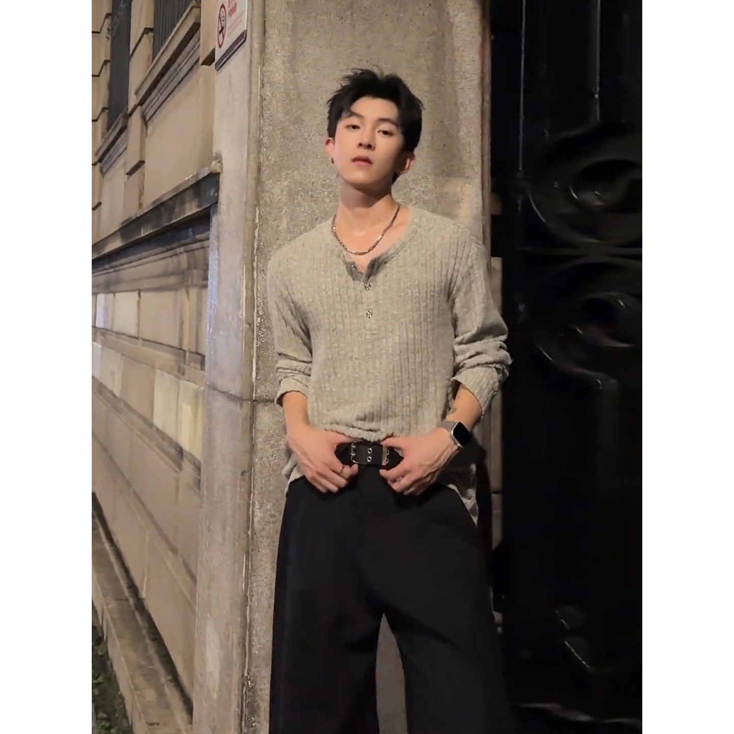 加绒加厚保暖线衣长领针织打底衫 修身 上衣潮 高领毛衣秋冬韩版 男士