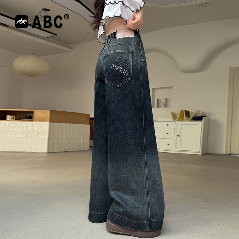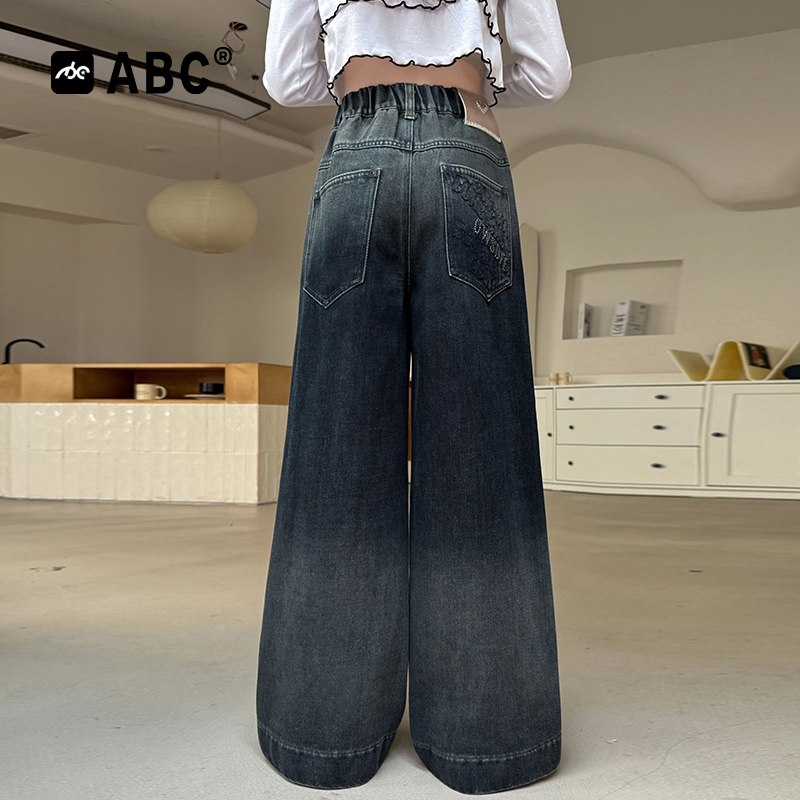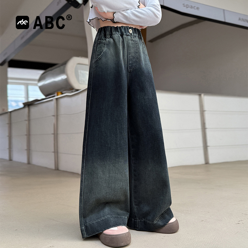 2025新款 裤 女孩时尚 女大童秋季 子潮 渐变阔腿裤 ABC女童春秋牛仔裤