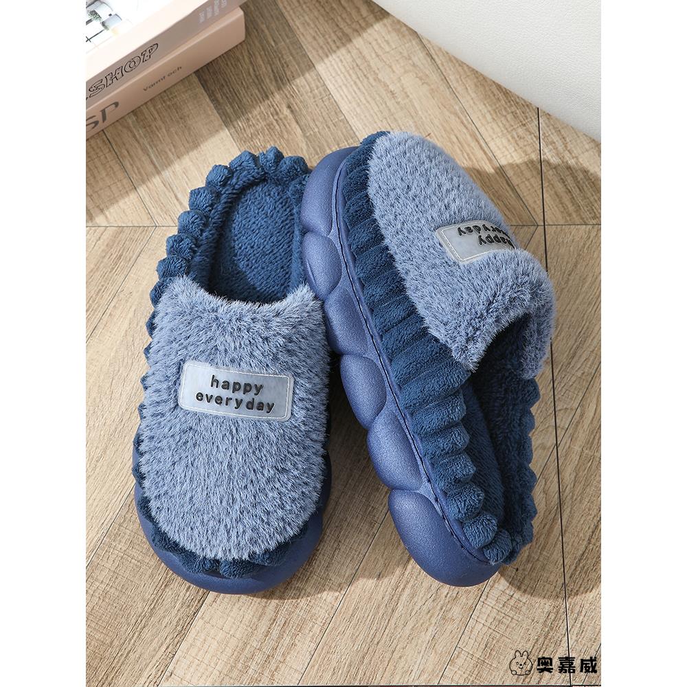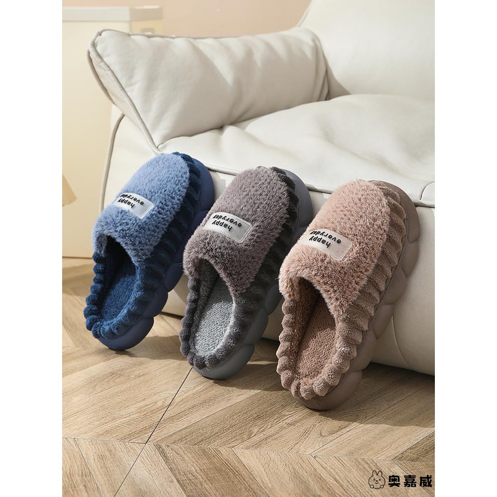 拖鞋 家用厚底保暖冬天加绒毛室内拖鞋 男款 大码 家居防滑棉男士 冬季