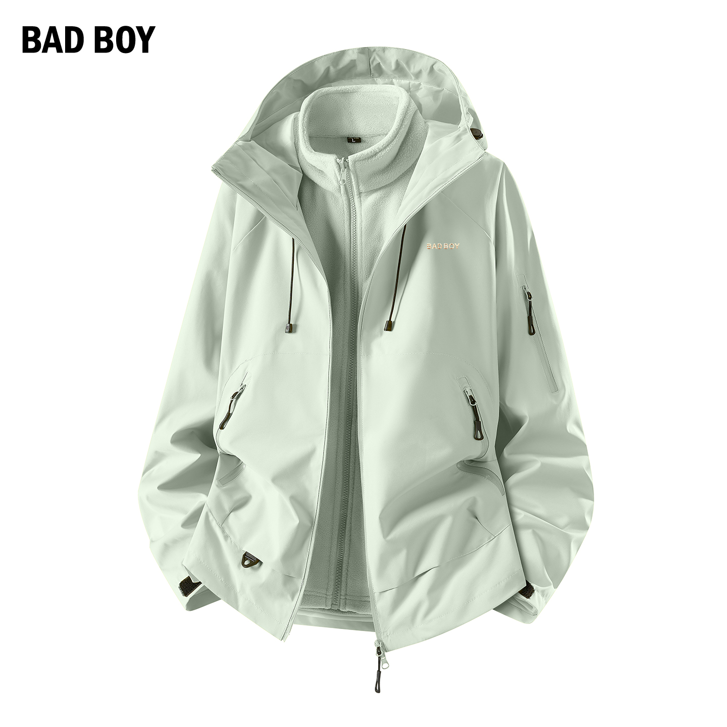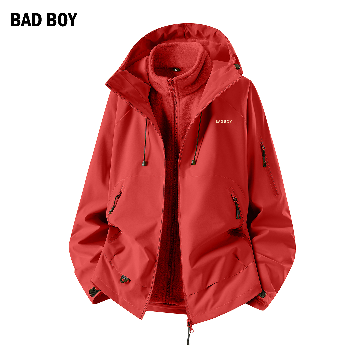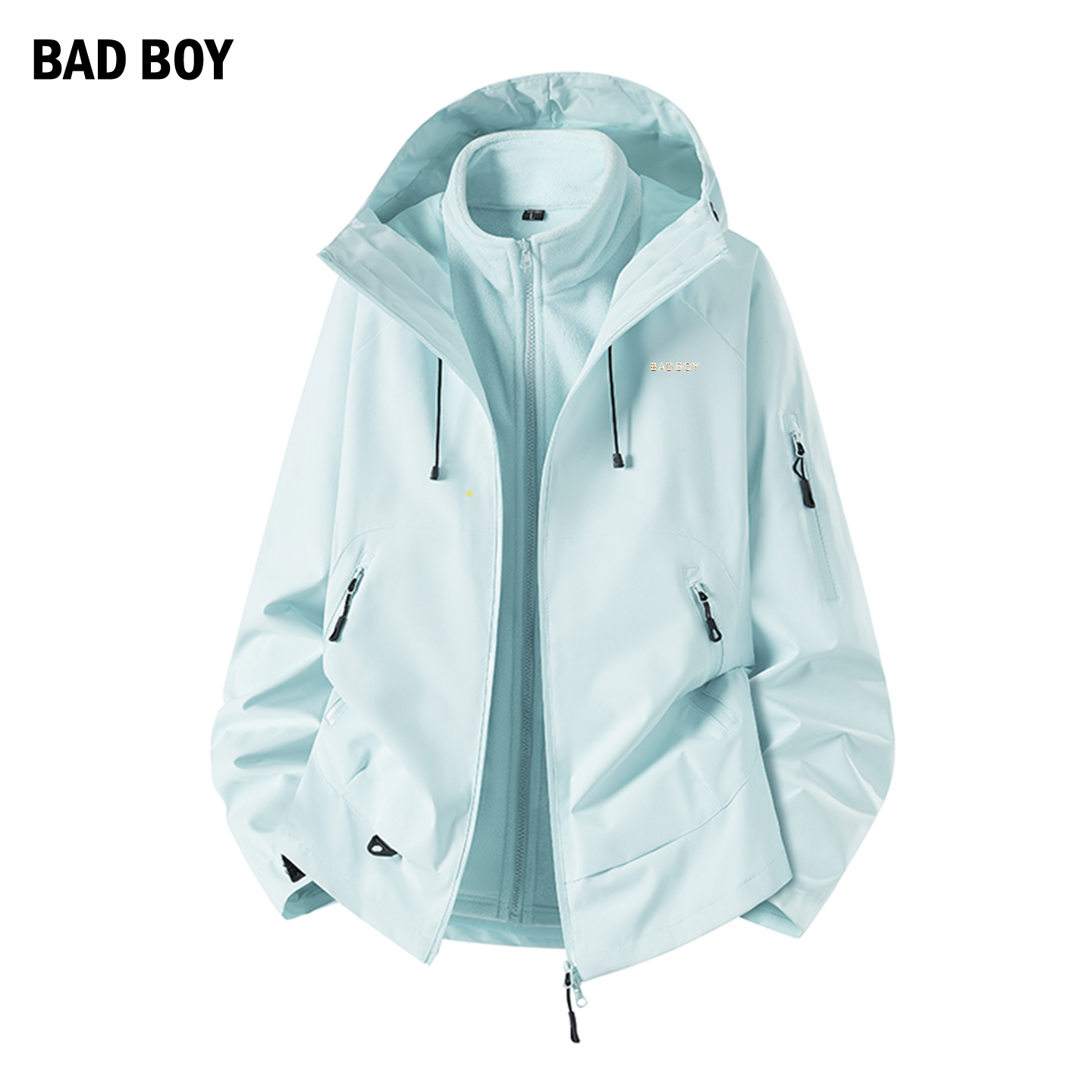 BAD BOY冲锋衣女秋冬三合一可拆卸登山服三防加厚户外运动夹克男