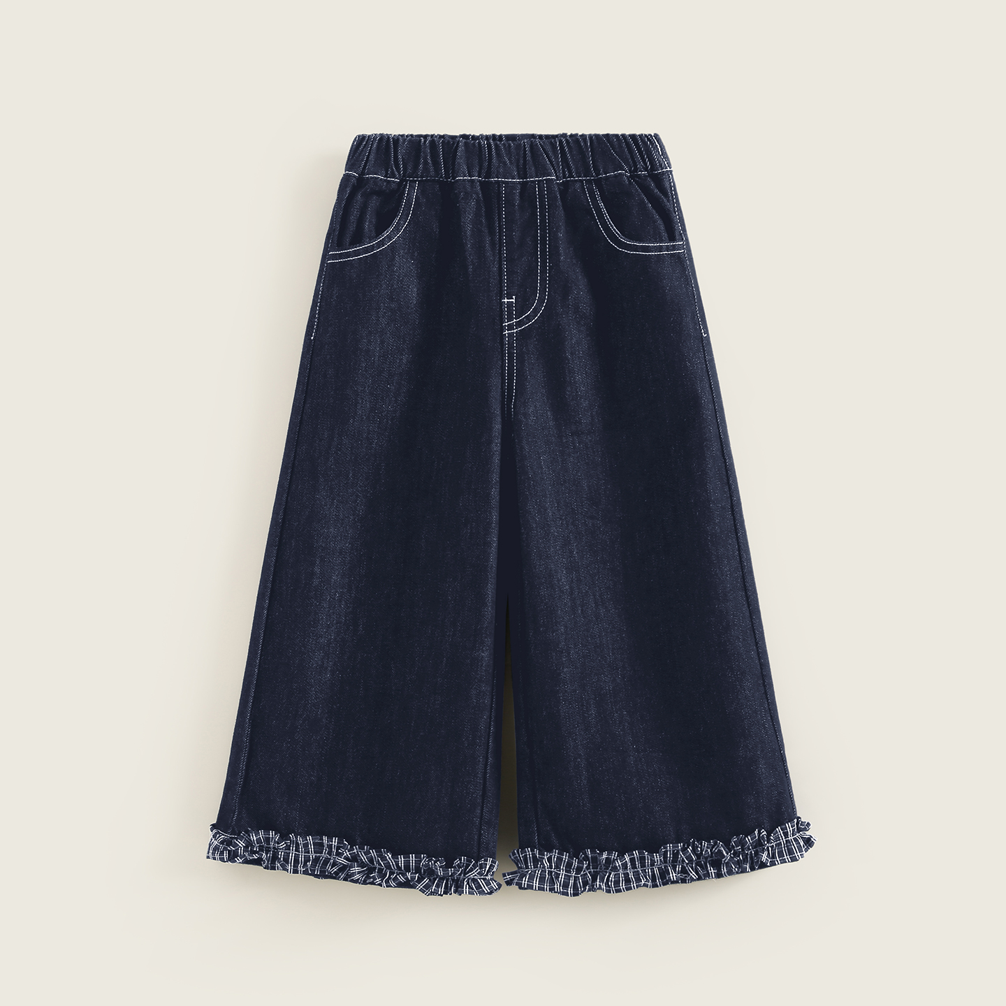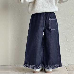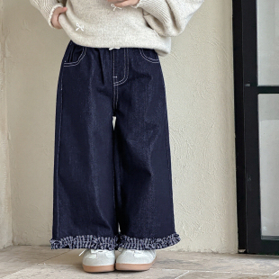 新品 春夏裤 优选 毛边牛仔长裤 子儿童阔腿裤 马克华菲女童喇叭裤