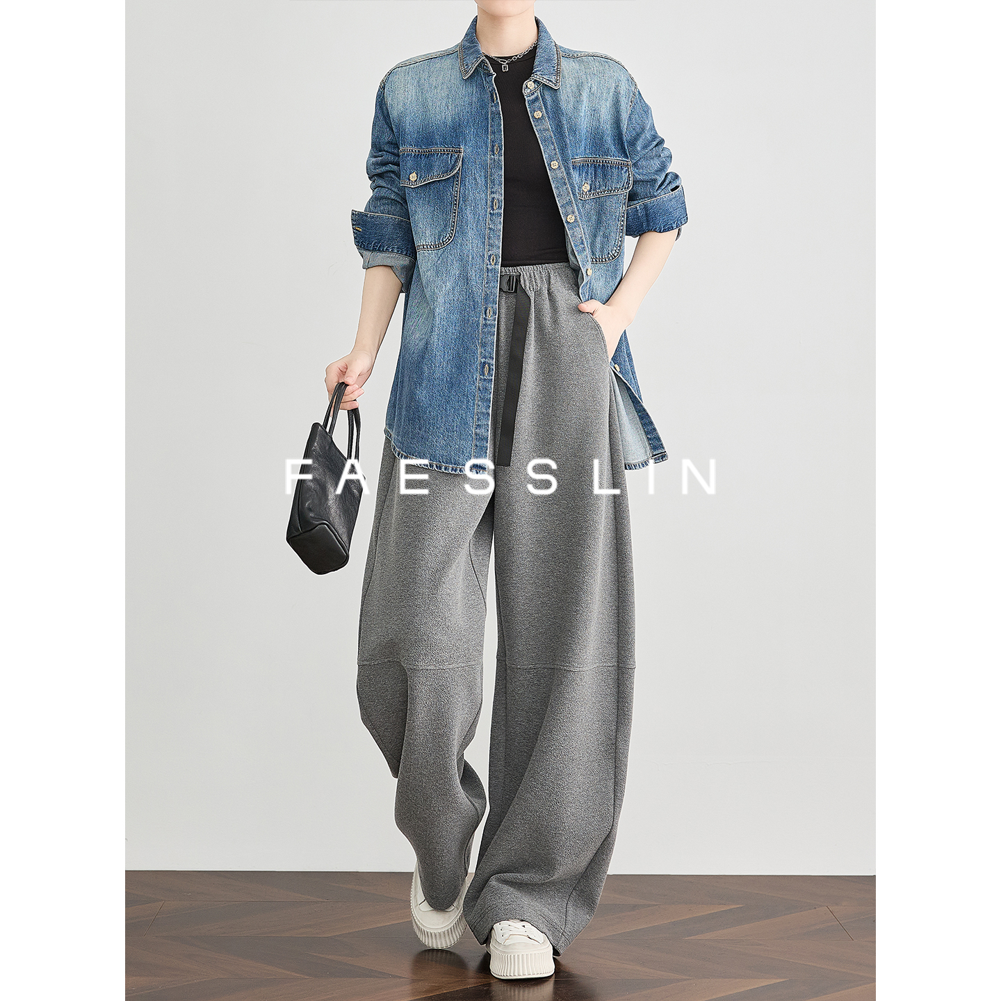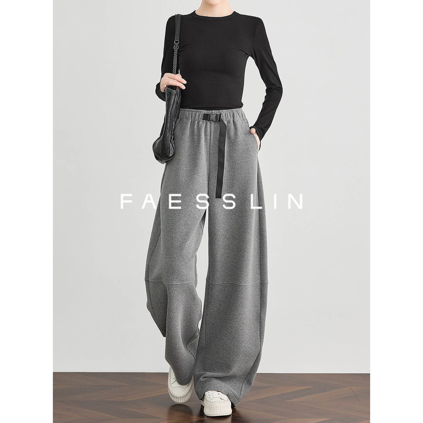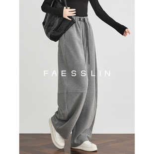 休闲秋冬阔腿裤 高腰直筒宽松香蕉卫裤 子 女春秋2025新款 灰色运动裤