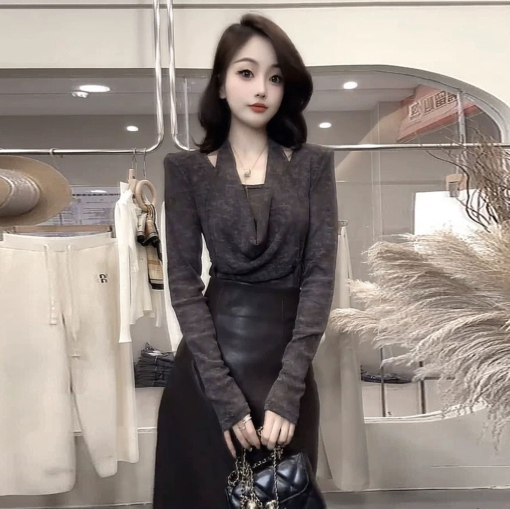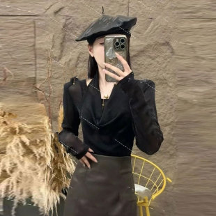 性感修身 韩版 新款 t恤女2025秋季 上衣 挂脖小心机时髦衬衣百搭长袖