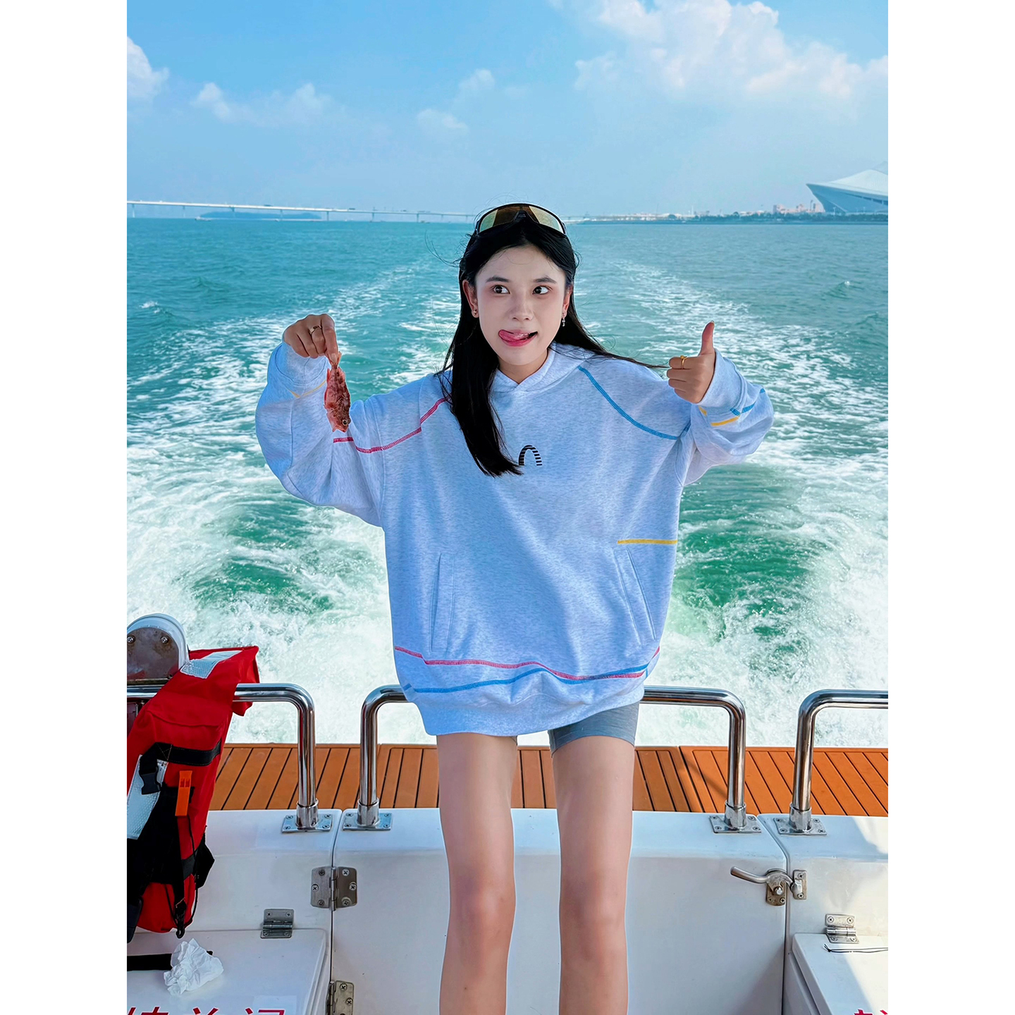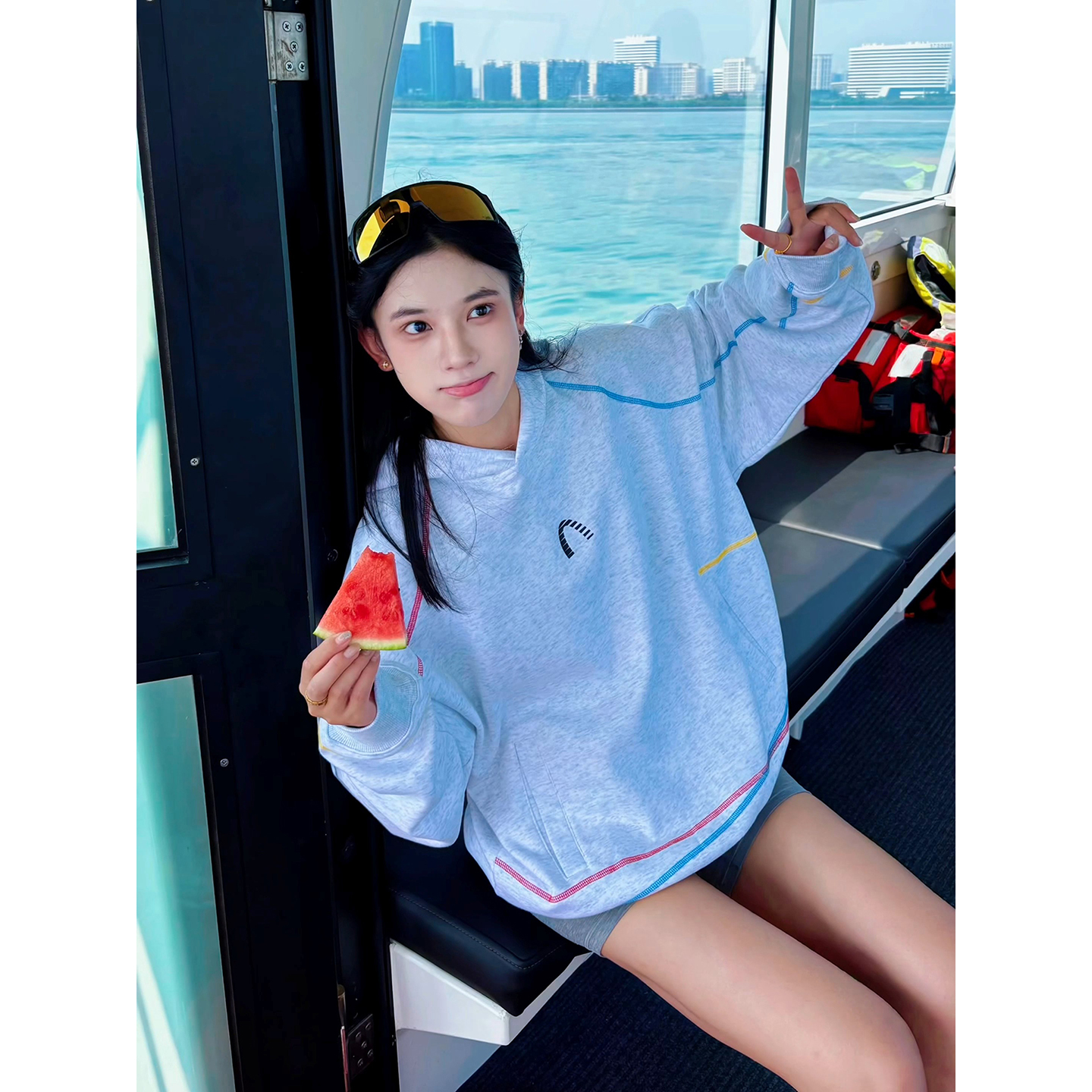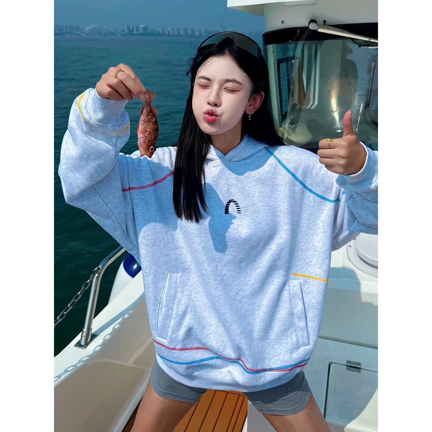 MardiMercredi小雏菊插肩薄卫衣明线短款 休闲纯棉上衣女运动新款