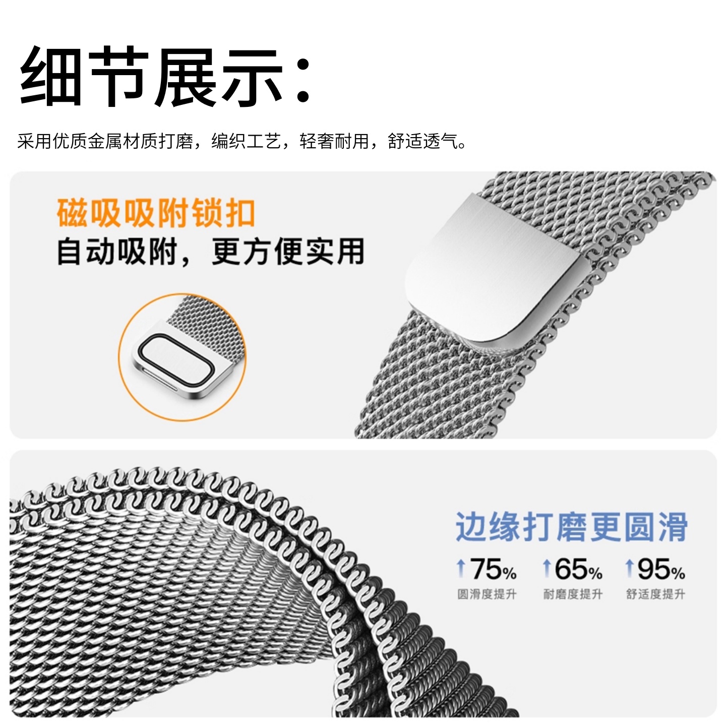 适用于华为手环10手表带9米兰尼斯磁吸回环8nfc表链新款 智能运动手环band10男女9金属高级感替换腕带配件夏