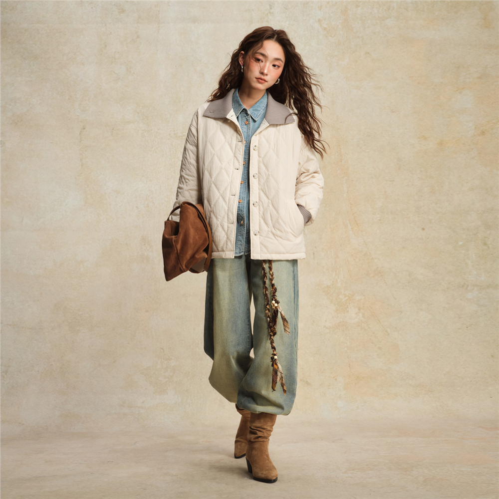 棉衣Q 韩系小个子短款 班尼路S&K系列麦穗绒开衫 外套女2025秋冬新款