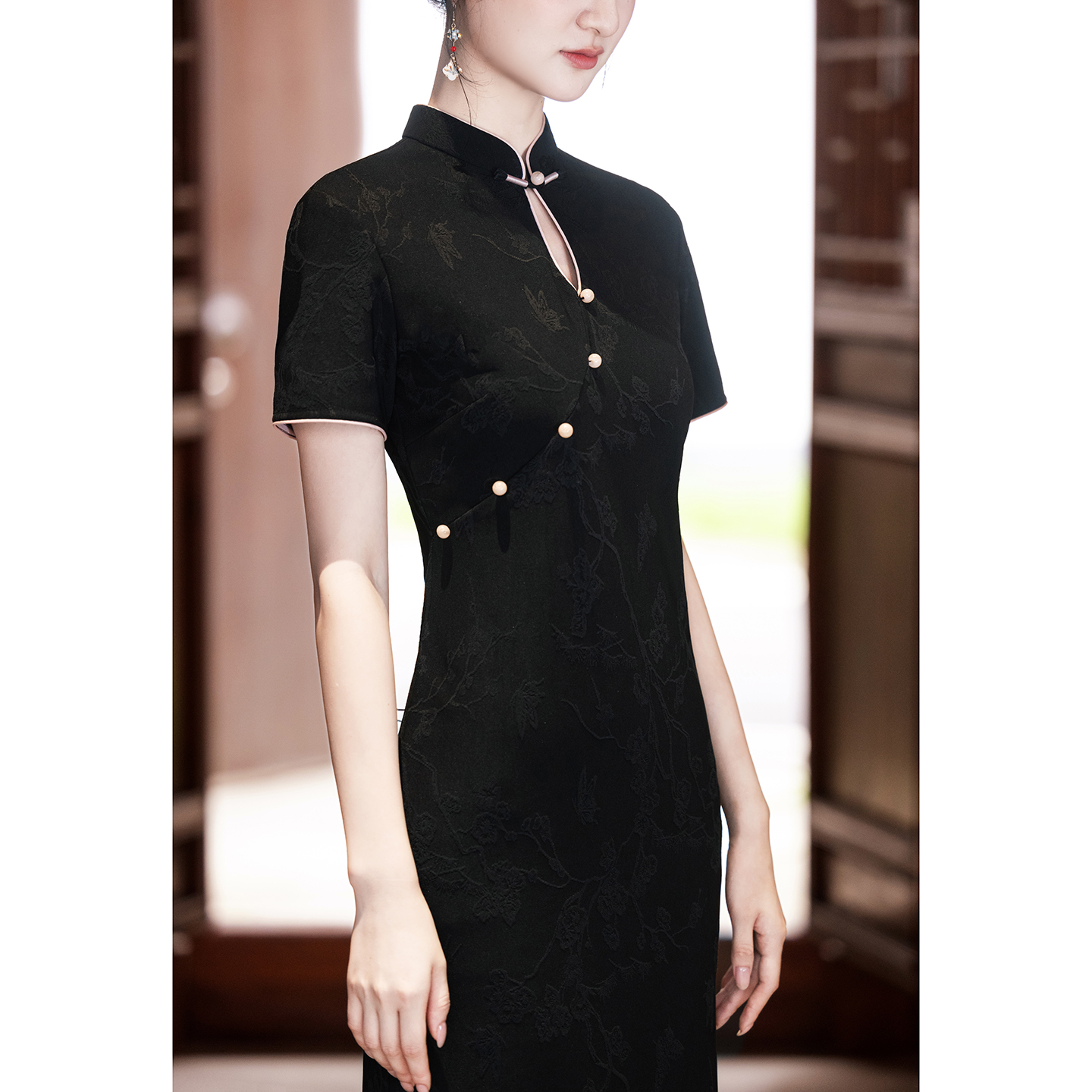 少女高级感连衣裙 改良年轻款 黑色弹力针织提花新中式 旗袍2025新款
