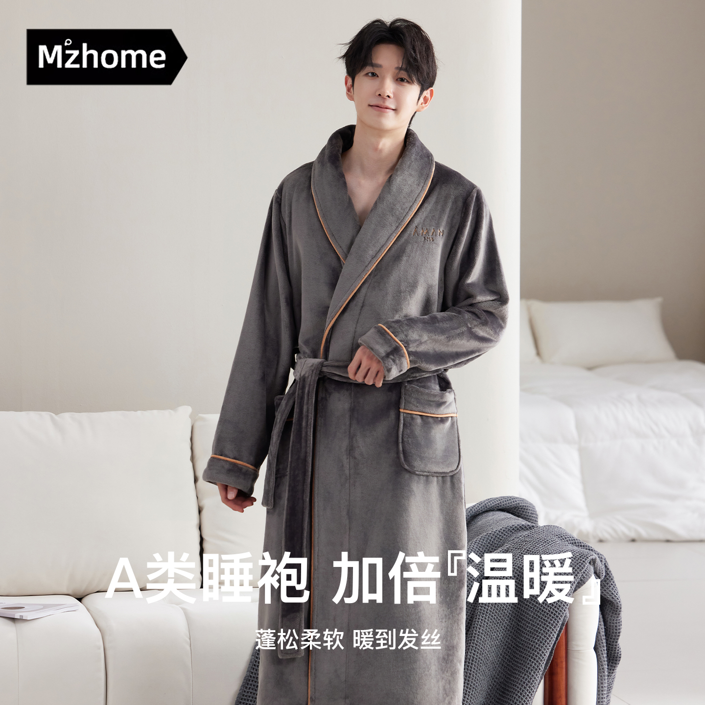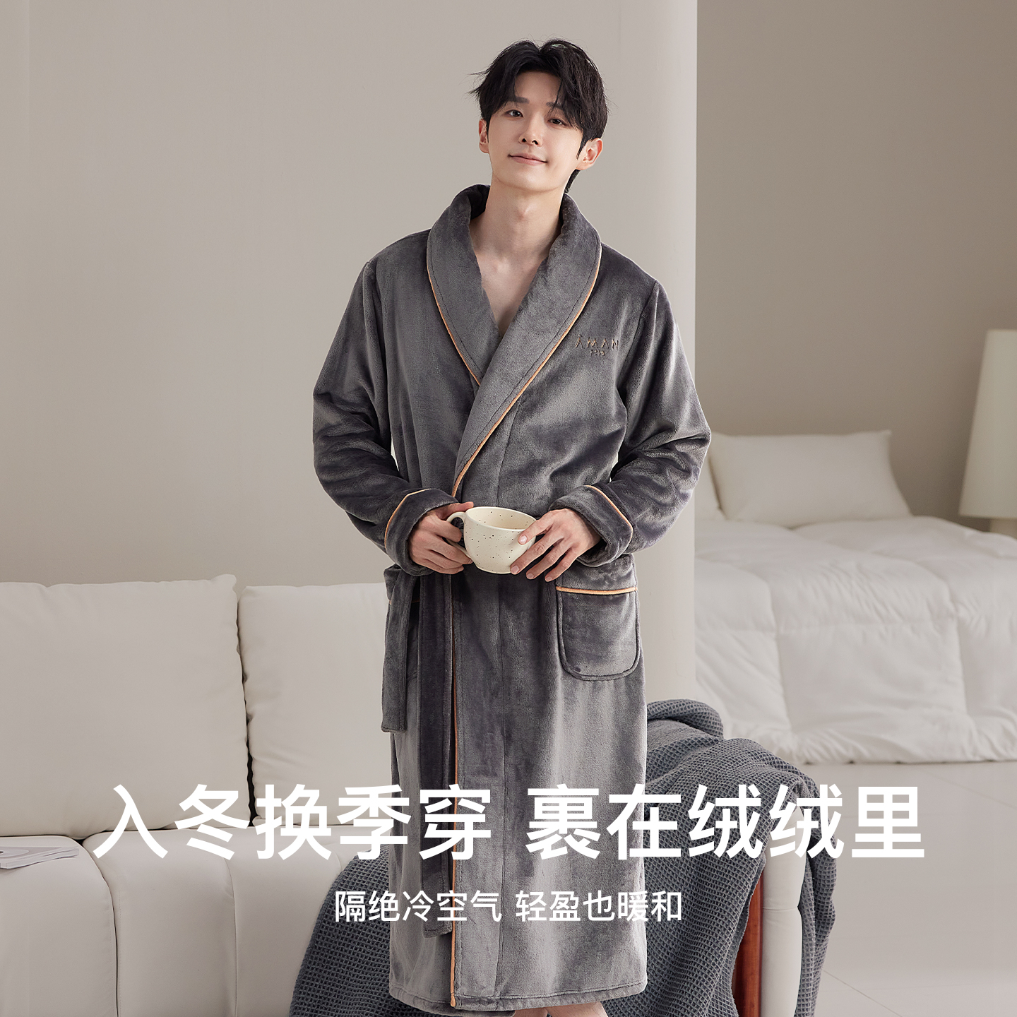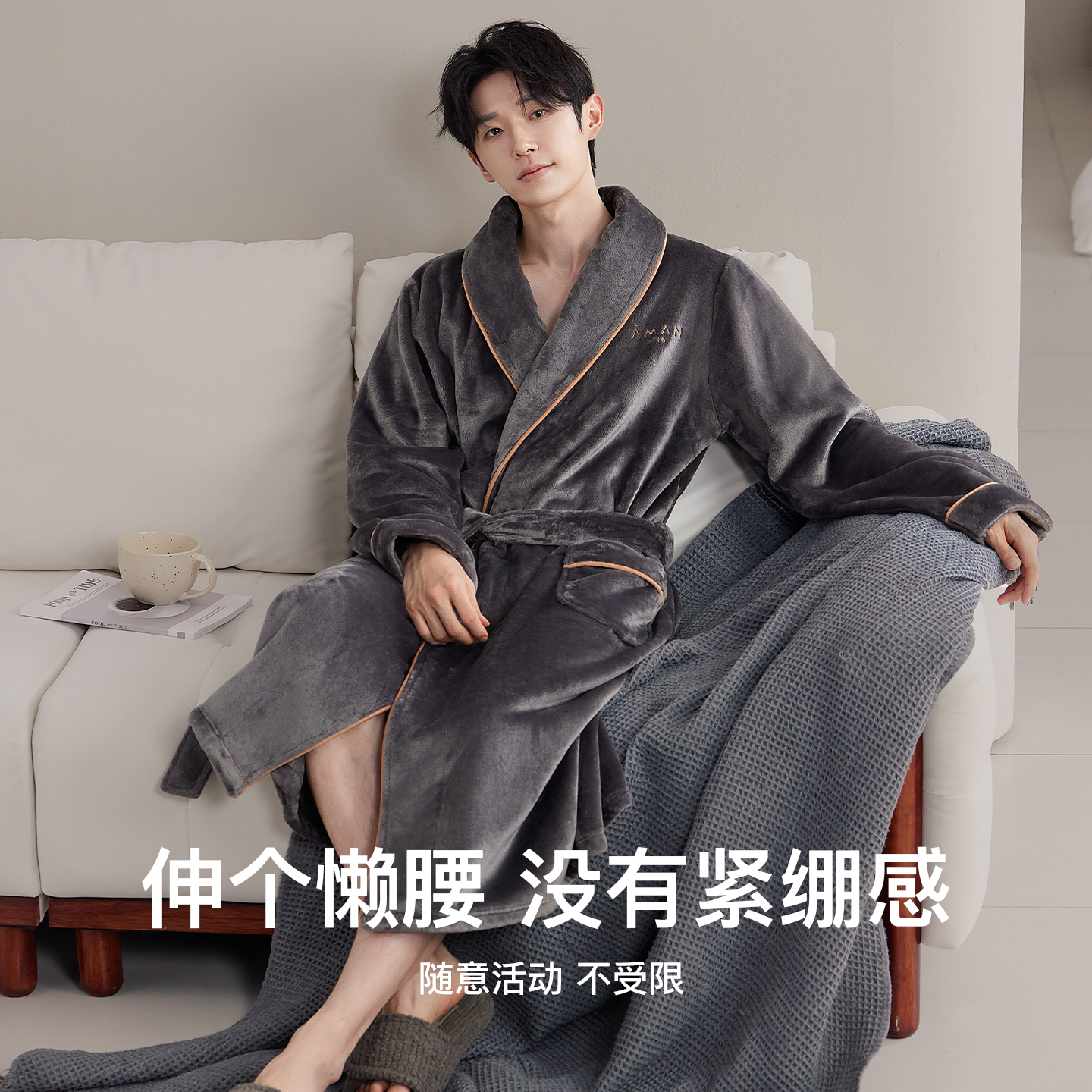 浴袍长款 睡袍男士 珊瑚绒加绒加厚款 冬季 法兰绒家居服 睡衣秋冬款