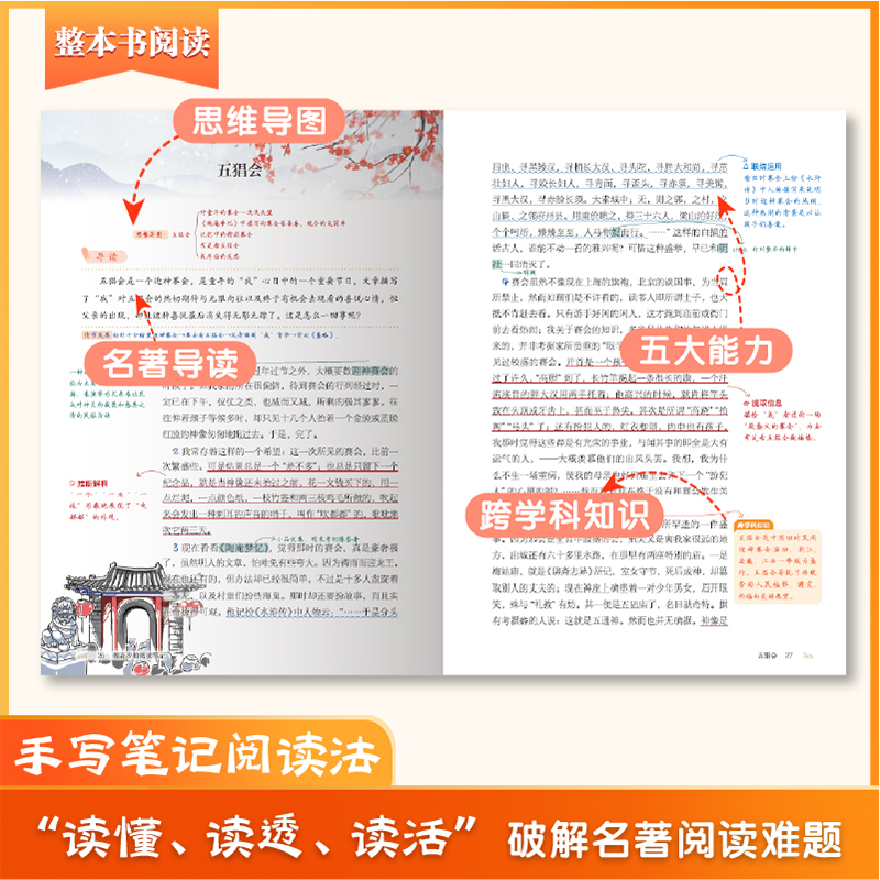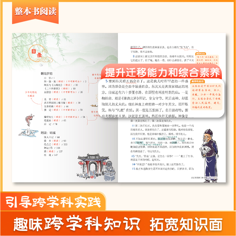 阅读笔记 教材课本老师推荐 正版 初一中学生上册配套人教版 阅读书籍世界名著 原著七年级必读书课外阅读书籍 朝花夕拾和西游记