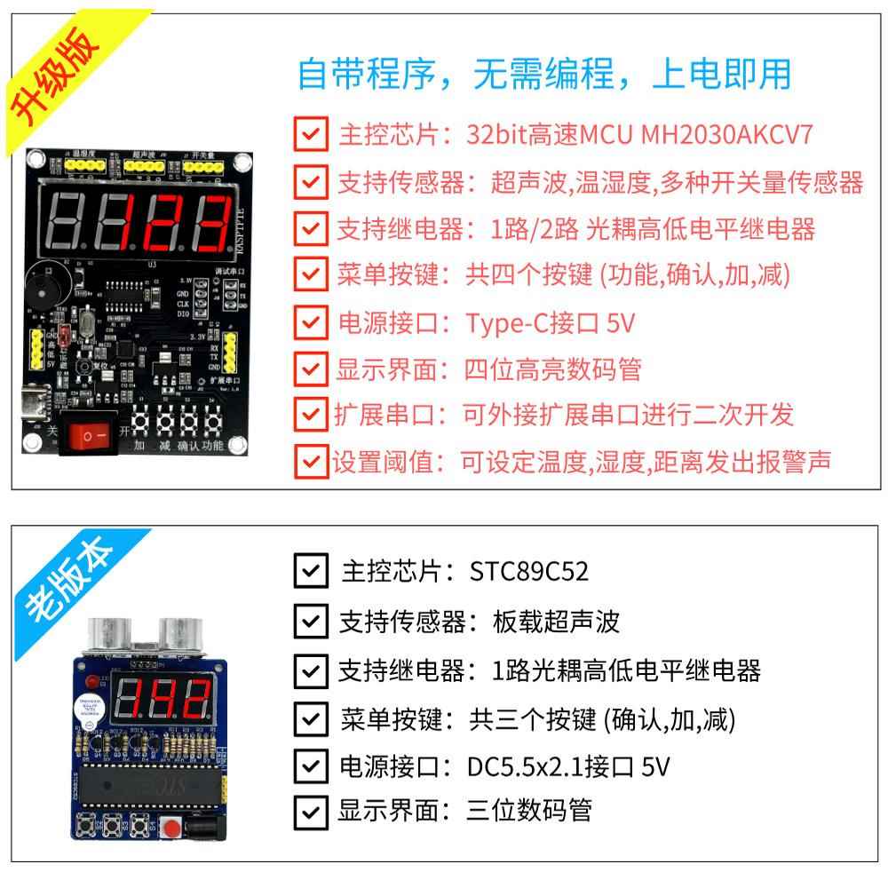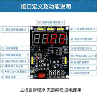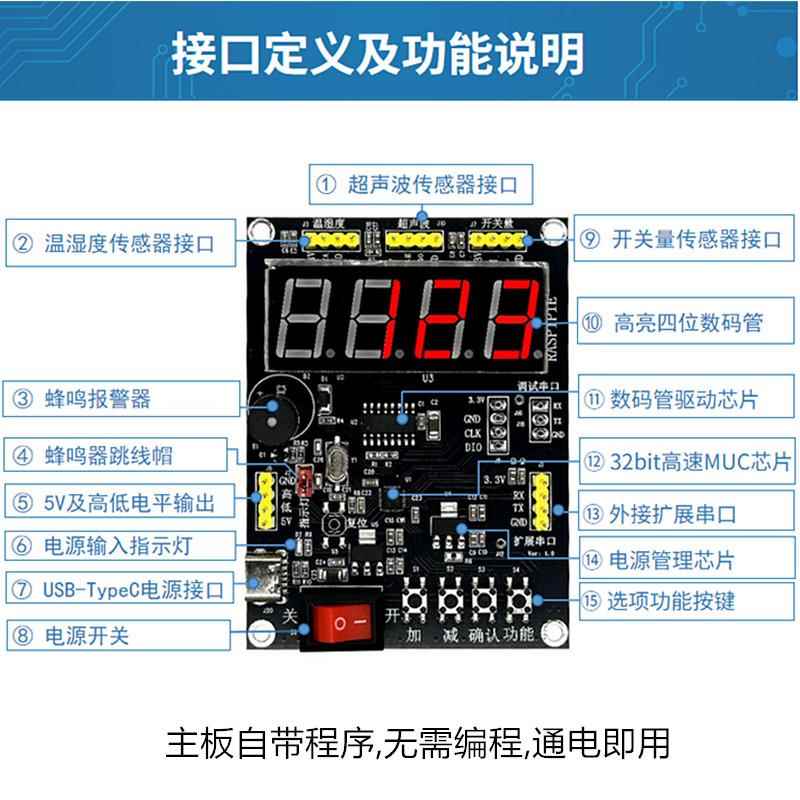 超音波测距温湿度火焰光敏人体感应感测器数显报警控制板实验套件