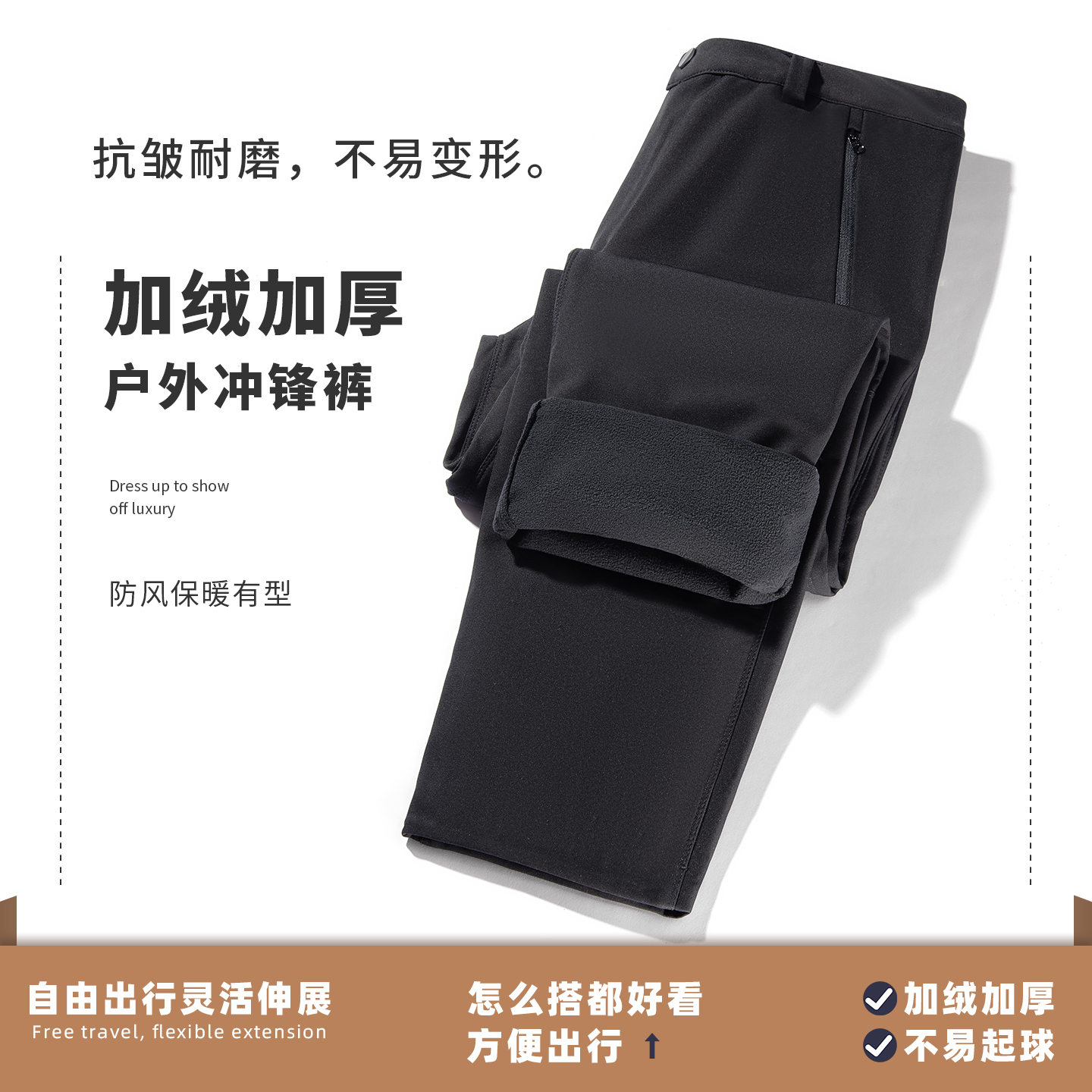 加绒加厚中老年男裤 新款 高腰宽松休闲裤 子中年男士 爸爸户外保暖裤