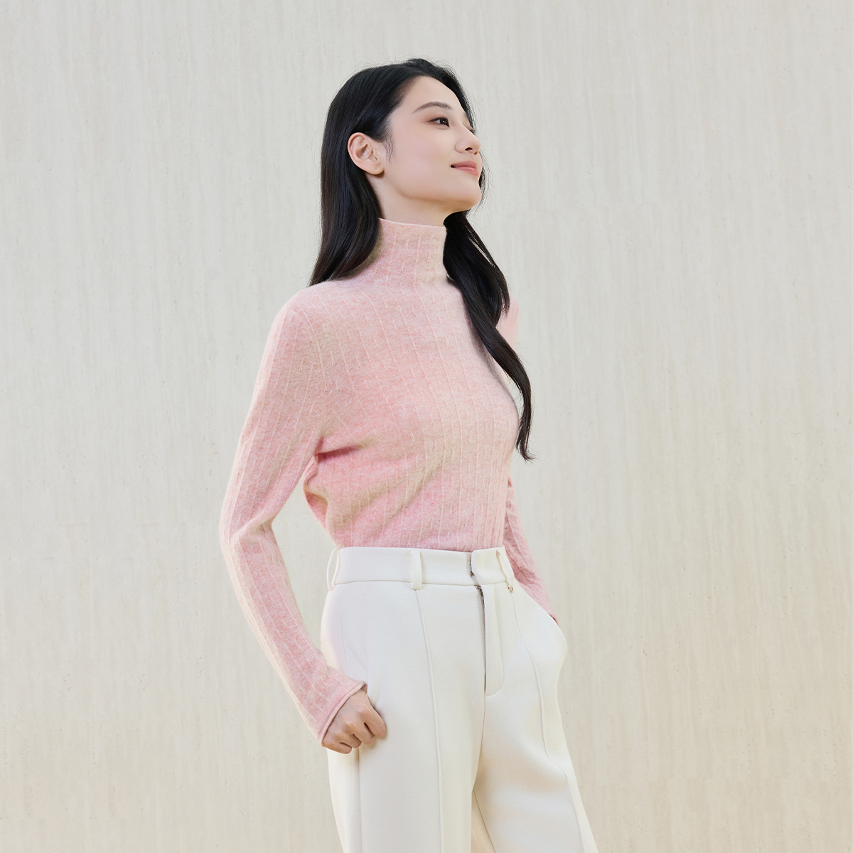 口清新长袖 佳人苑羊毛衫 高领卷边袖 新款 羊毛上衣舒适 女2025年冬季