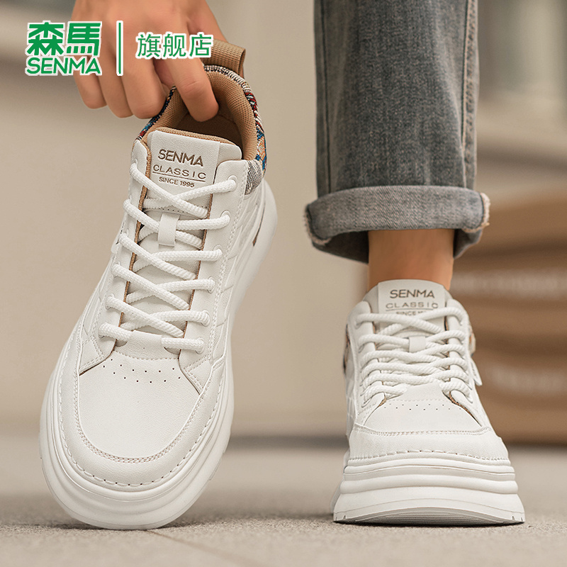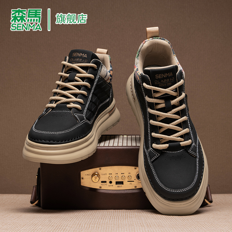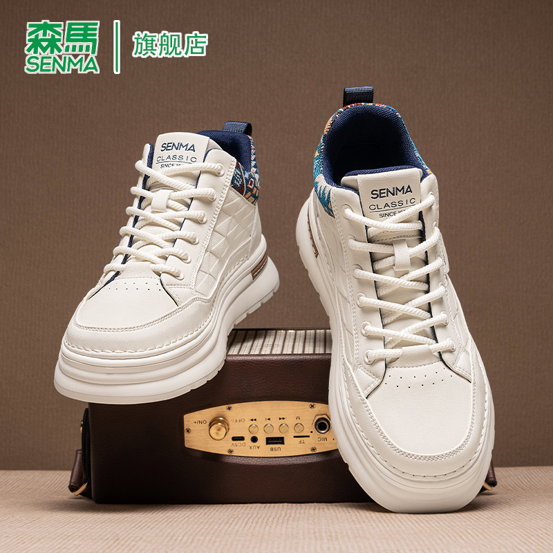 靴子 真皮防水厚底增高工装 森马马丁靴男秋季 高帮百搭休闲白色板鞋