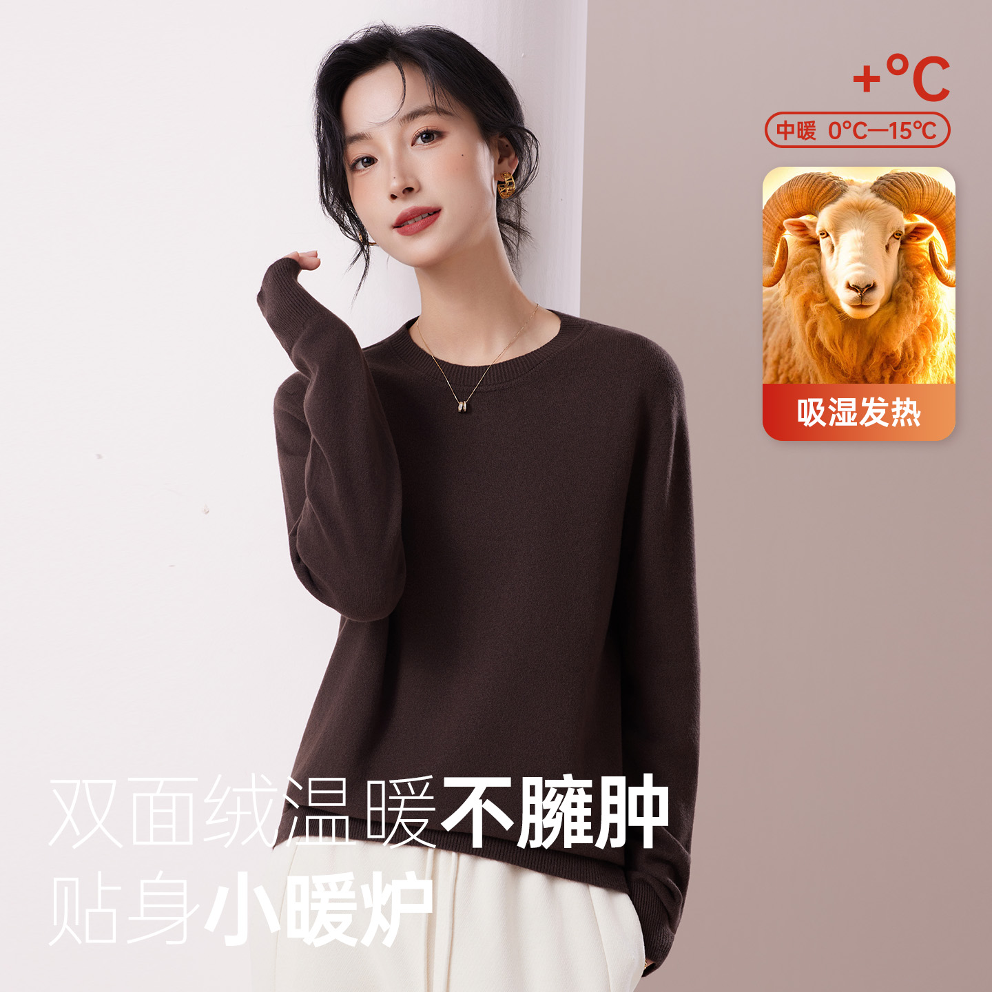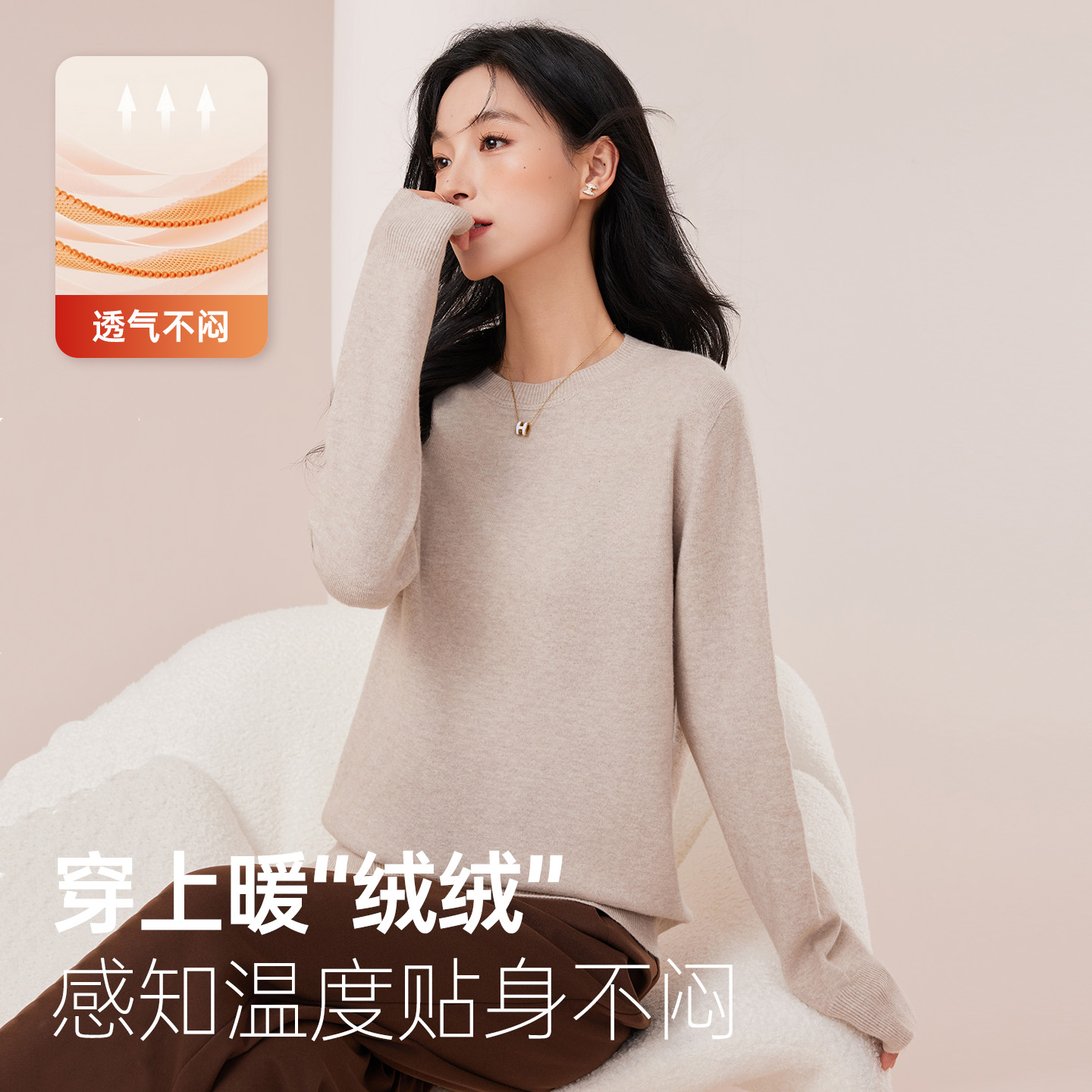 高级感上衣宽松打底针织衫 圆领100%纯山羊绒衫 女高端毛衣秋冬新款
