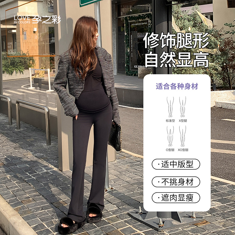 子 休闲长裤 孕之彩孕妇春秋外穿微喇叭裤 显瘦显高加长高腰托腹裤