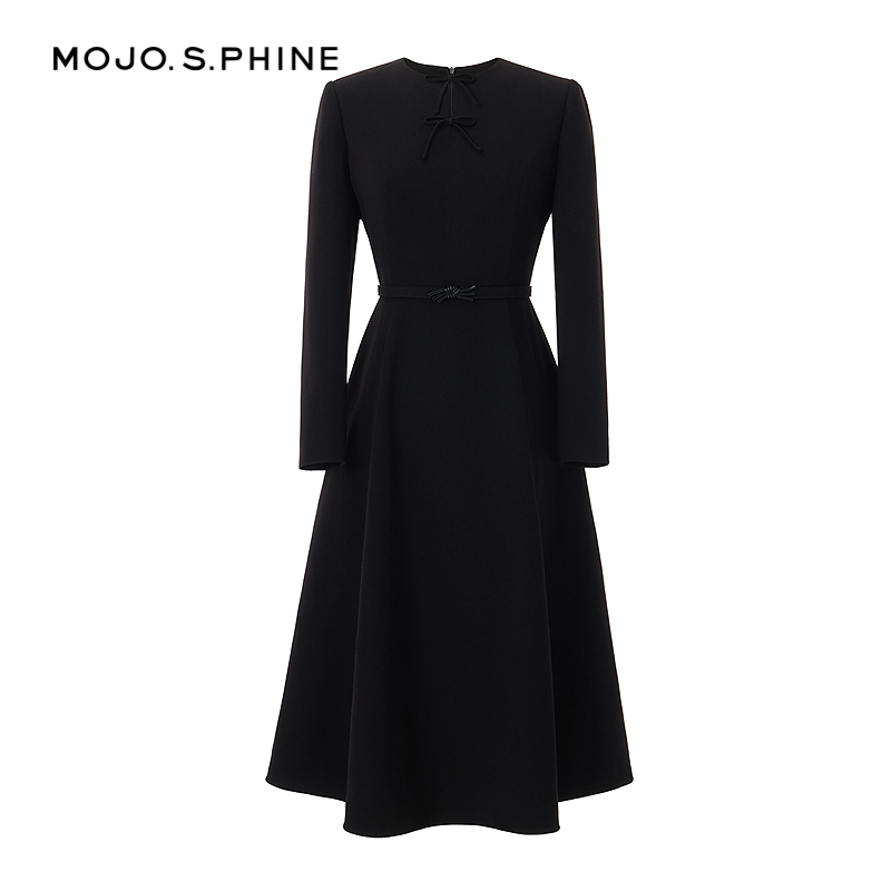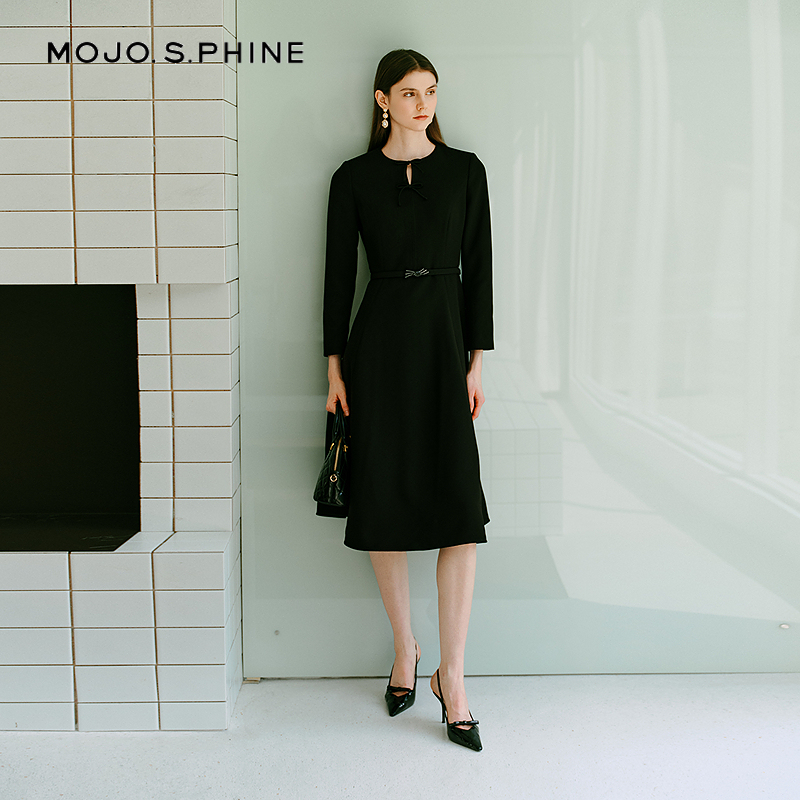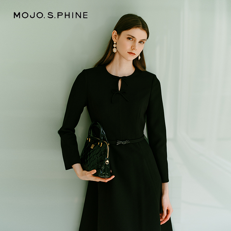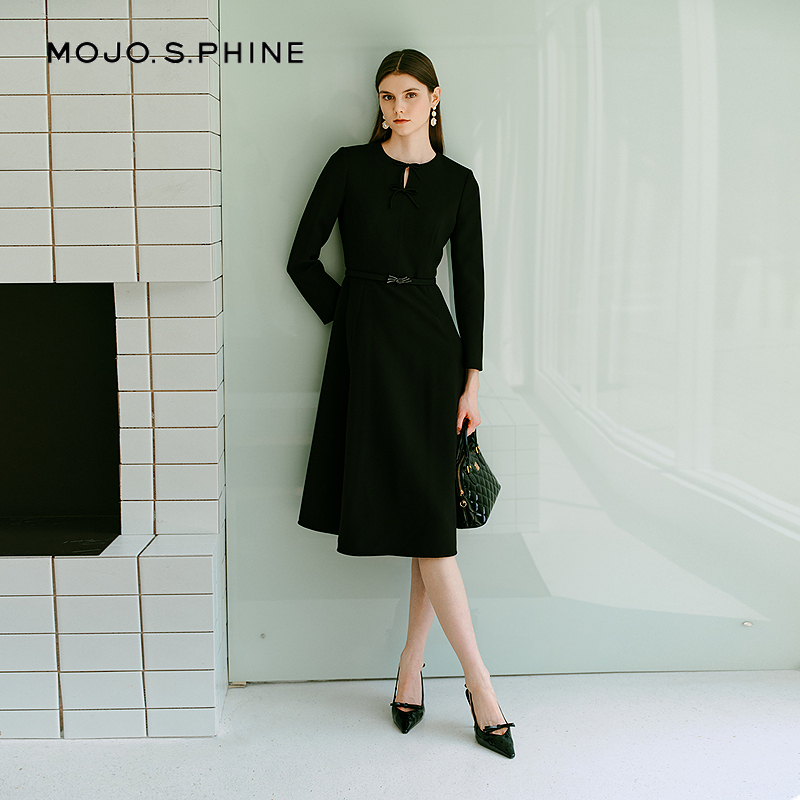 MOJO莫佐2025冬新款 小资连衣裙女高级感黑色通勤收腰连衣裙秋 法式