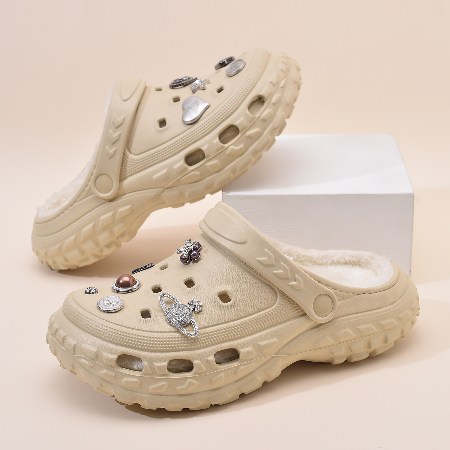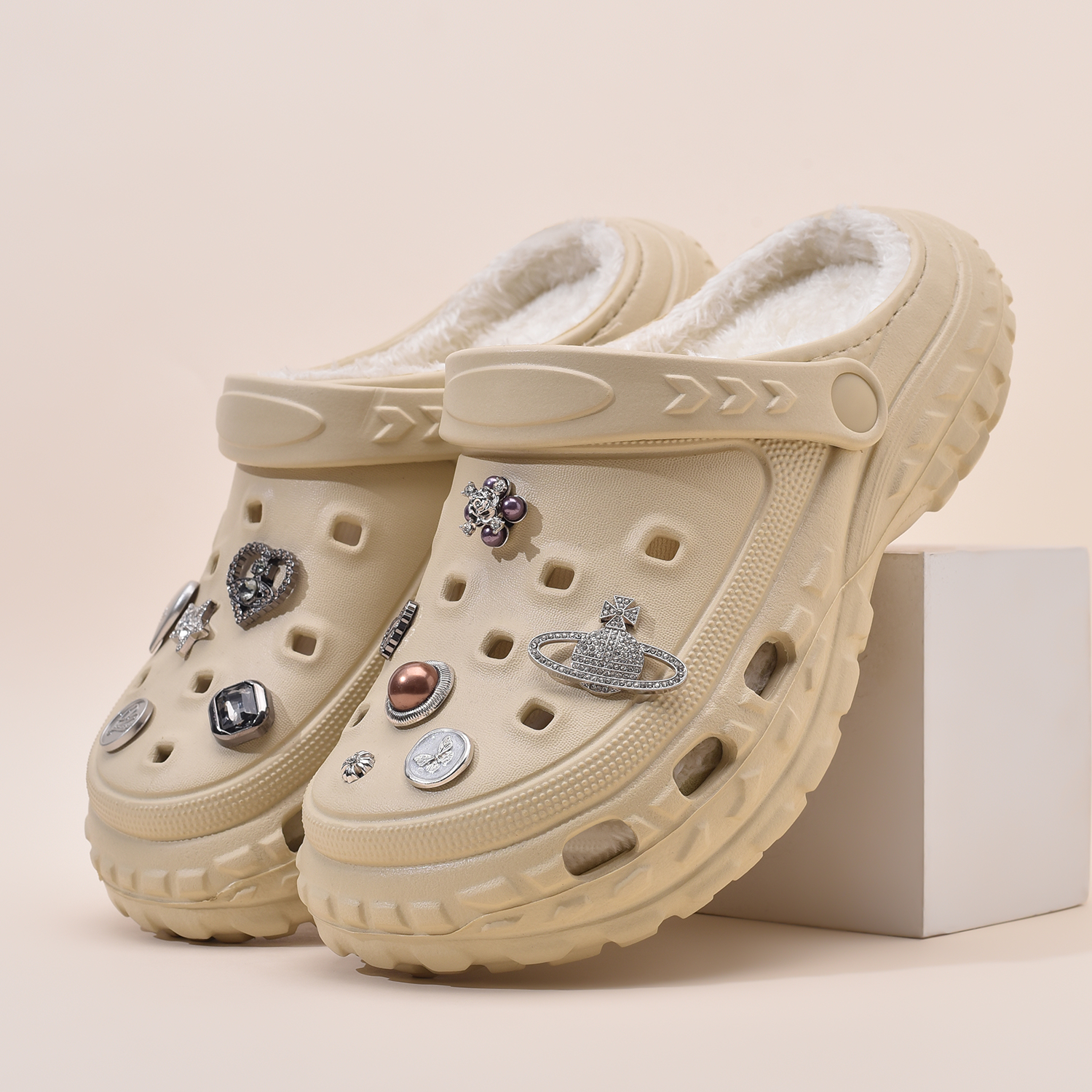 一脚蹬加绒棉拖鞋 厚底勃肯鞋 秋冬爆款 女外穿2025新款 包头毛毛拖鞋