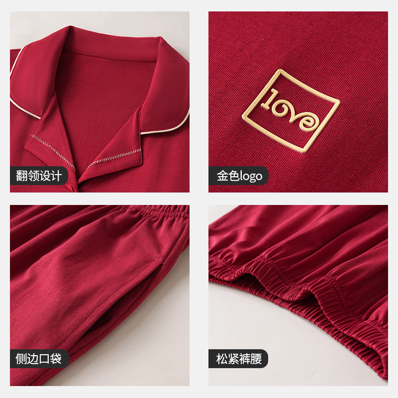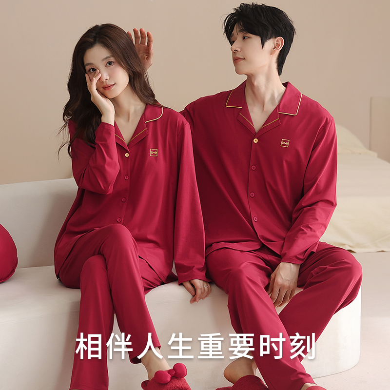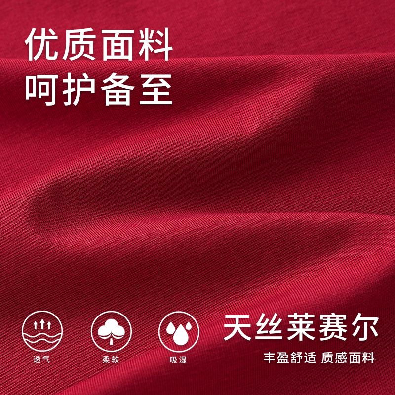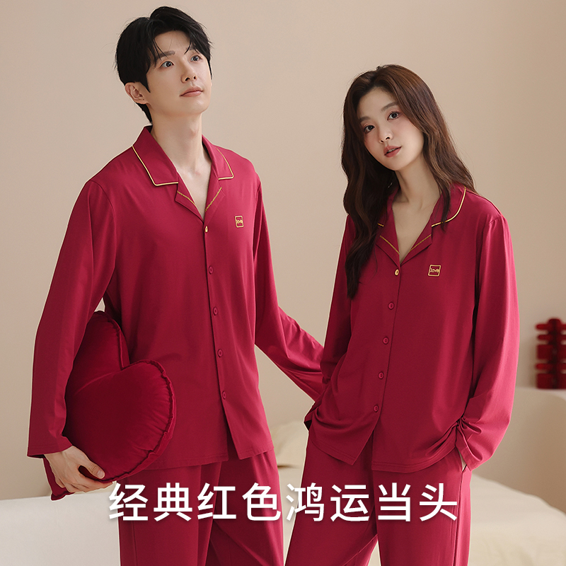 恒源祥情侣款 柔软透气天丝莱赛尔男女喜庆结婚新婚家居服 睡衣秋季