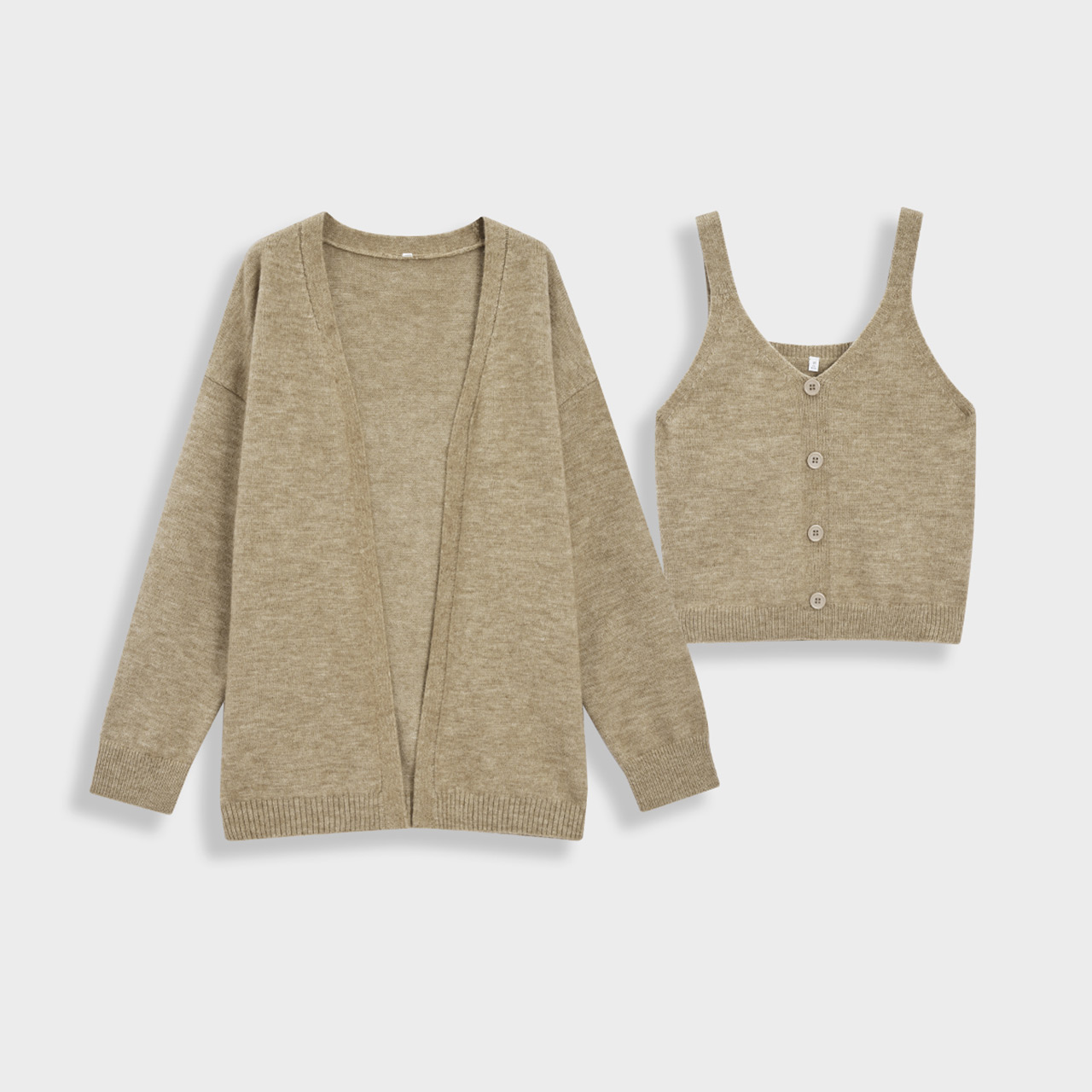 爱依服 毛针织开衫 微胖 法式 背心 两件套上衣胖MM2025秋新款 IEF