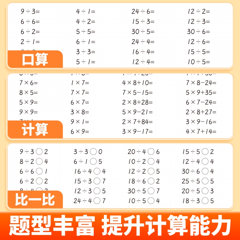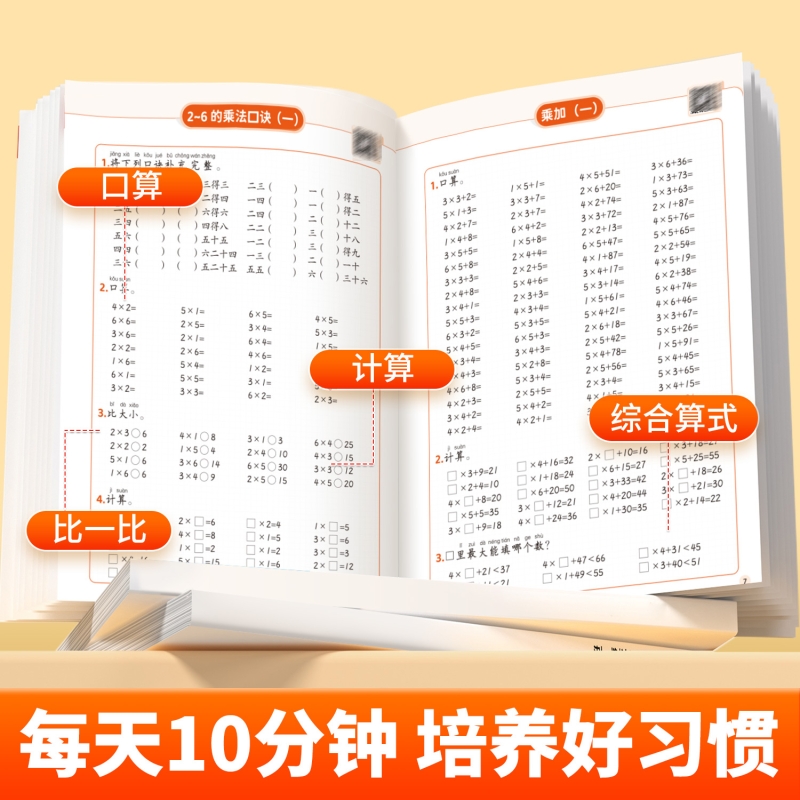 竖式 口算题卡脱式 计算题小学2上教材同步练习题册加减乘除法口算专项思维训练题每日一练 二年级口算天天练上册数学人教版 2025新版