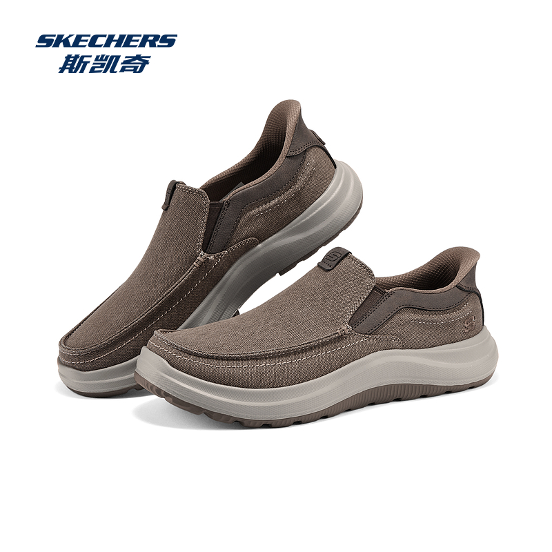 休闲运动鞋 斯凯奇闪穿鞋 中老年爸爸鞋 男鞋 宽楦秋冬 一脚蹬健步鞋