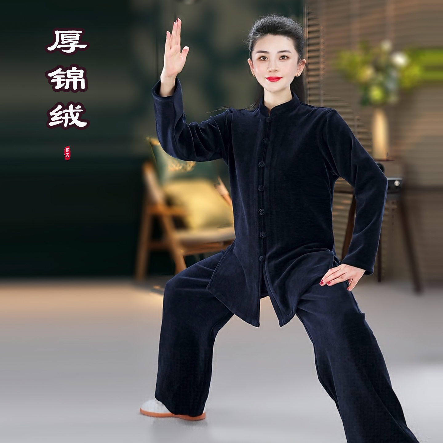 太极服男女新款 2025年秋冬季 武术八段锦太极拳练功服装 厚锦绒