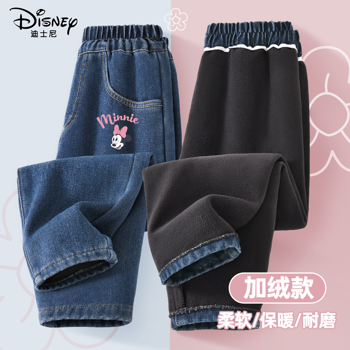 长裤 保暖童装 好看时尚 儿童冬装 子 迪士尼女童加绒牛仔裤 裤 2025新款