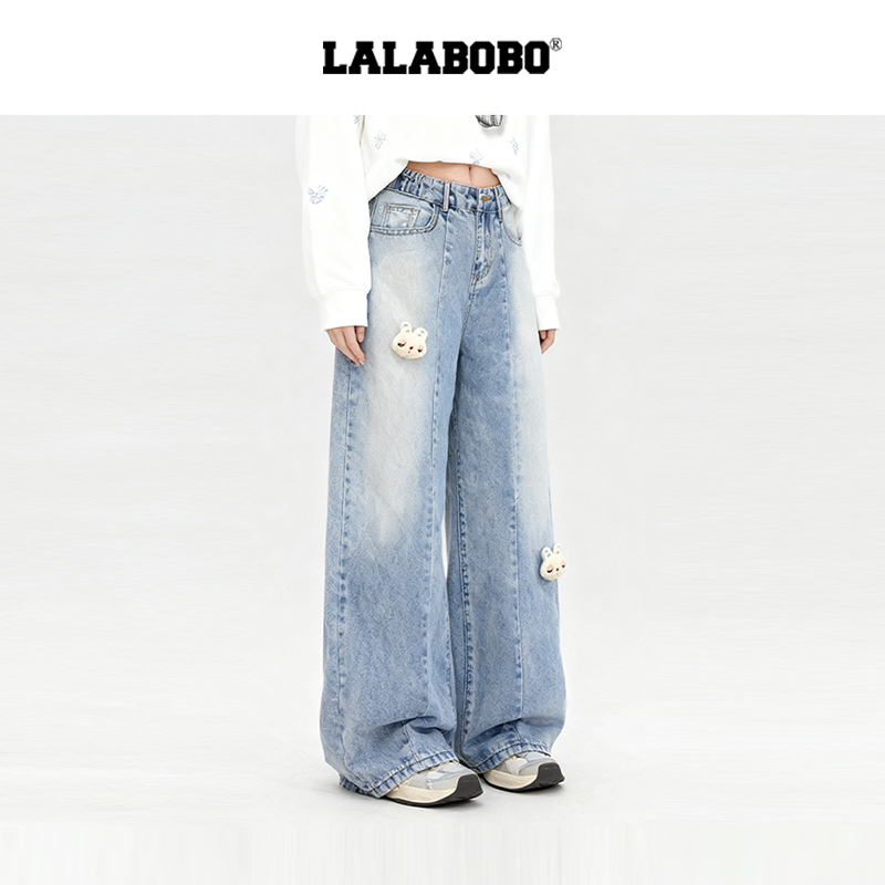 潮原创巨好看印花裤 25年秋新款 LALABOBO弯刀牛仔裤 子 商场同款
