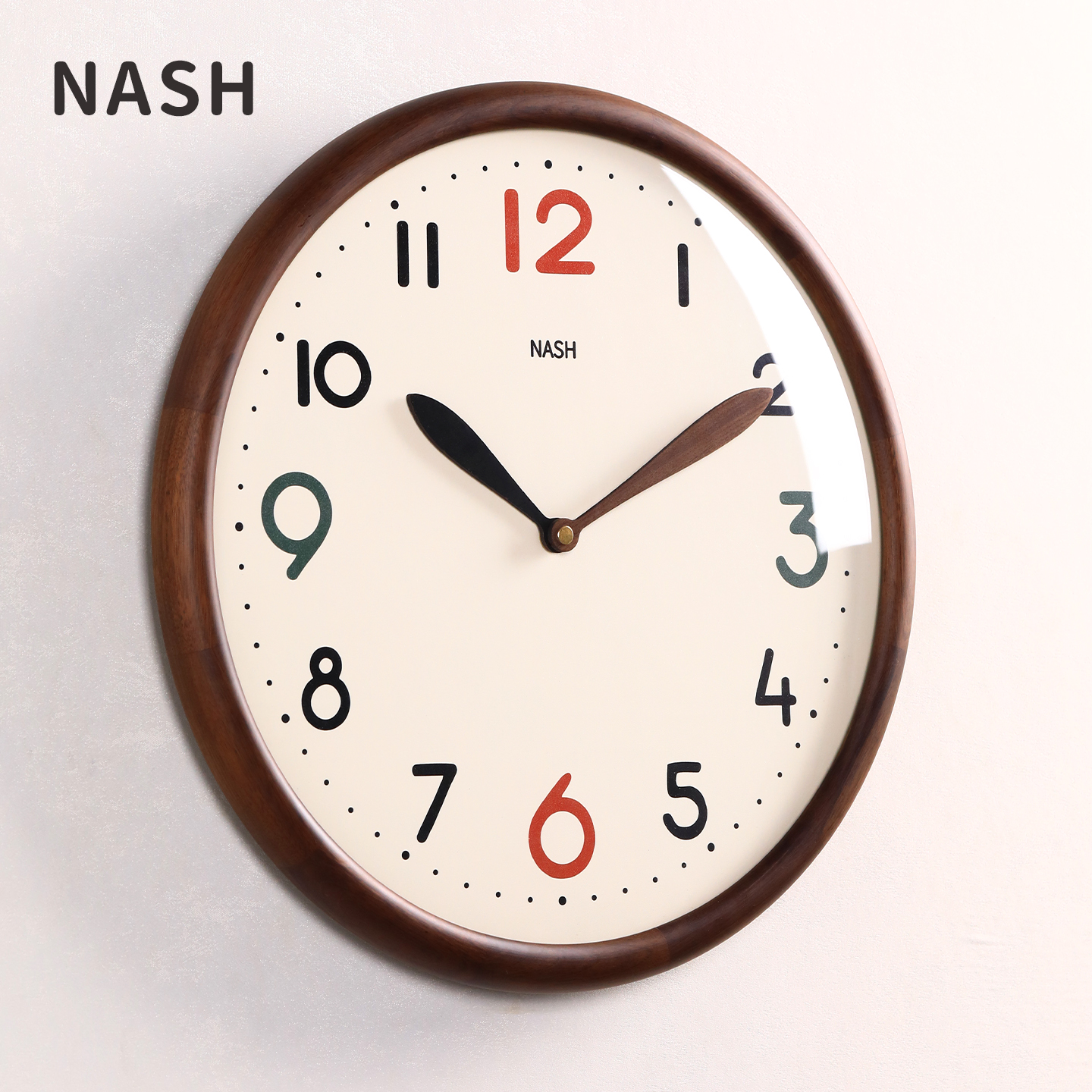 高颜值2025新款 实木挂钟客厅家用静音时钟表现代简约挂墙挂表大气