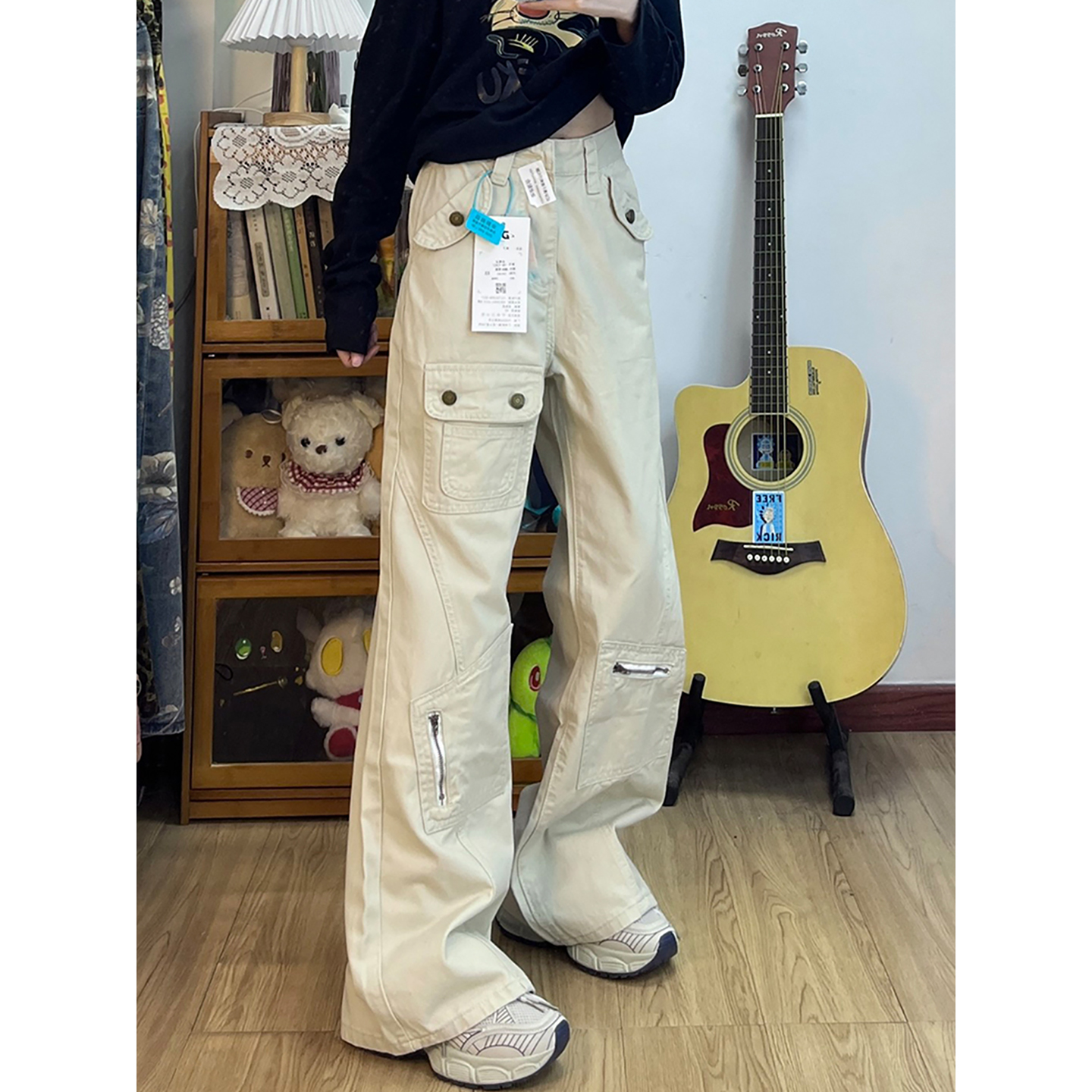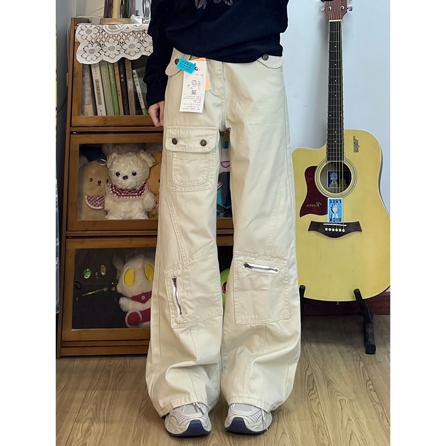 显瘦直筒垂感拖地裤 高腰宽松大码 子 女2025春秋新款 白色牛仔阔腿裤