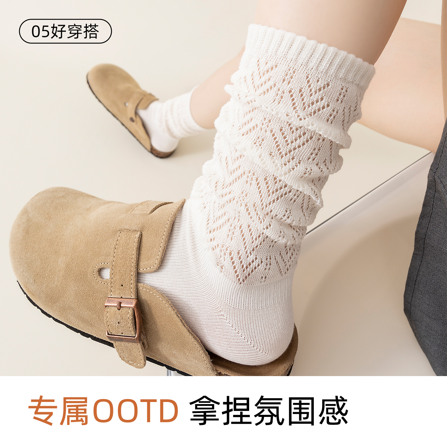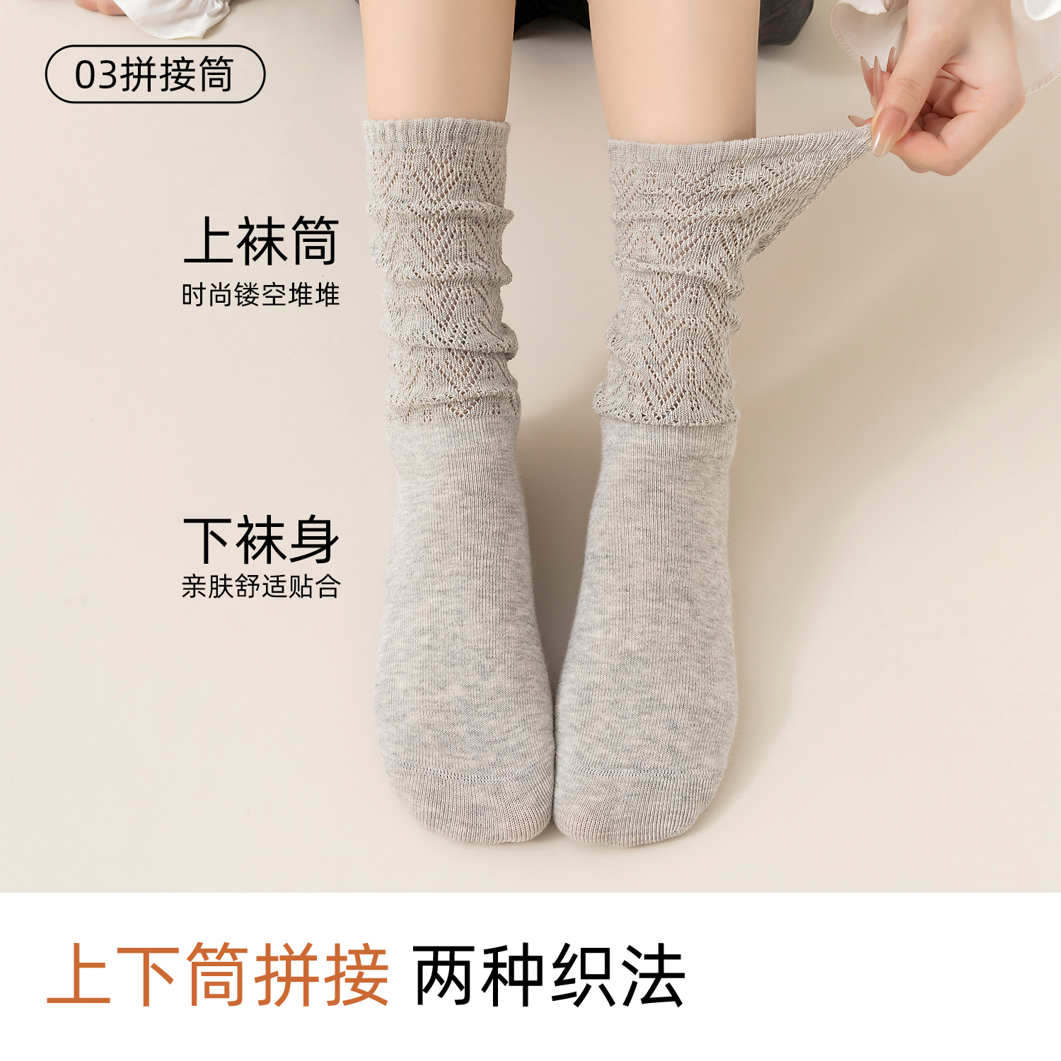 薄款 黑色袜子女中筒袜春秋季 堆堆长筒过膝袜jk压力瘦腿小腿袜夏季
